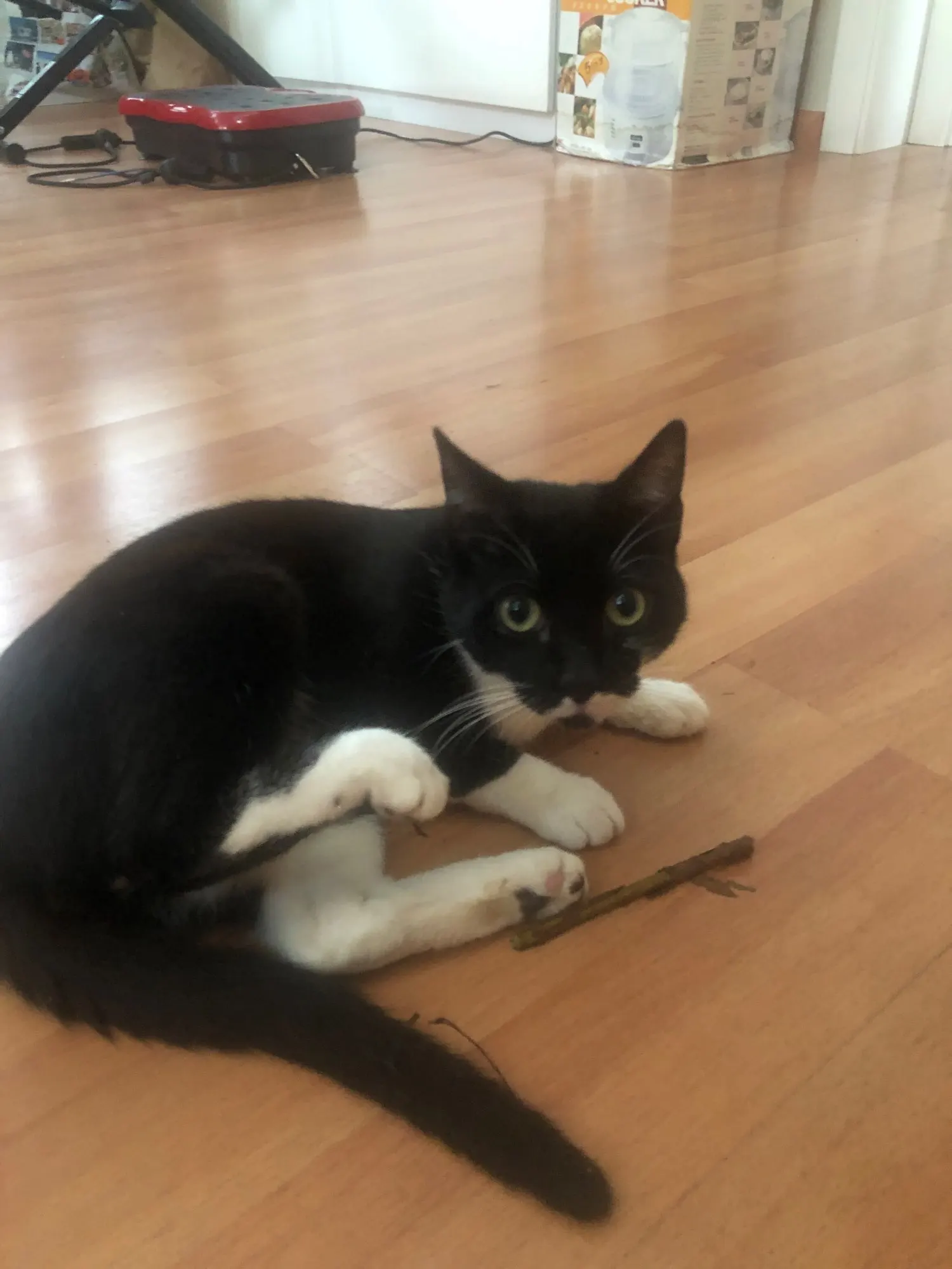 Мои кошки не знают, что делать с палками. Они используются в качестве игрушек