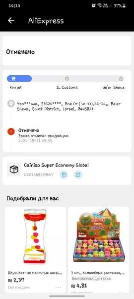 Продавец отправил мне номер отслеживания и через 2 недели отменить заказ. Я ничего не получил!