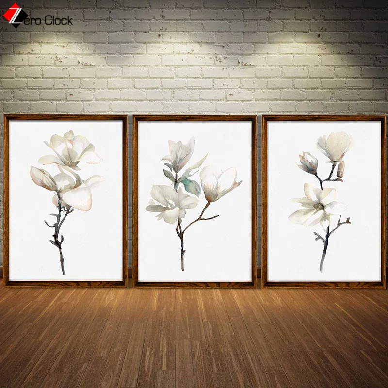 Картина на холсте с изображением магнолии, минималистичное настенное искусство, плакат с белым цветком магнолии, подарок для женщин, Цветочный декор для комнаты без рамки