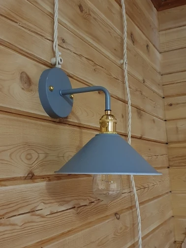 Отличный светильник-бра,цвет соответствует серому. С выключателем, провод ретро плетёный, но наш электрик решил его убрать....я только сейчас увидела, что его нет...специально с ним заказывала. Товао шёл недолго,2 недели до Иркутска.