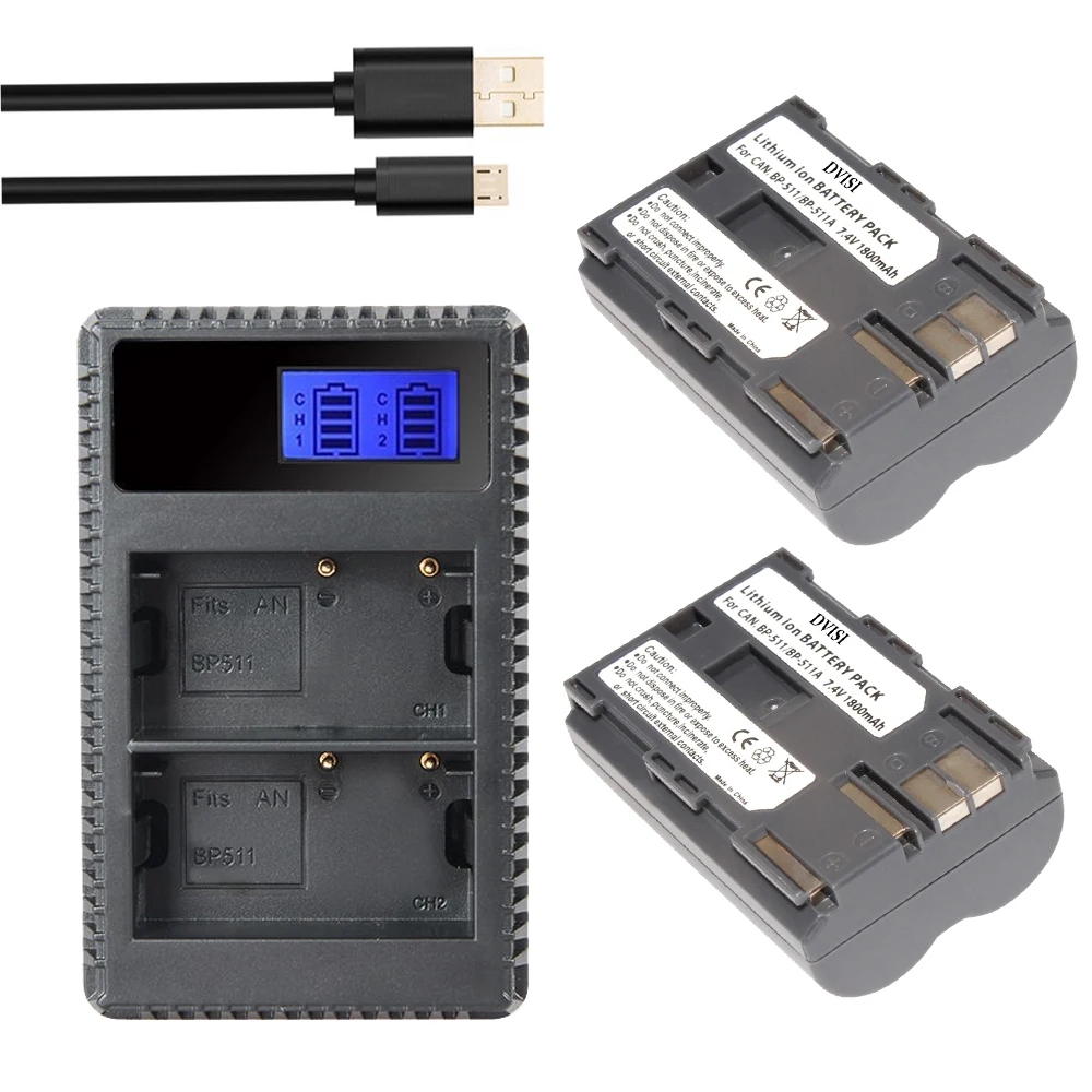 Аккумулятор 2x7,4 В, 1800 мА ч, BP 511 511A BP511 BP511A + зарядное устройство USB с ЖК-дисплеем для камеры Canon EOS 40D 300D 5D 20D 30D 50D