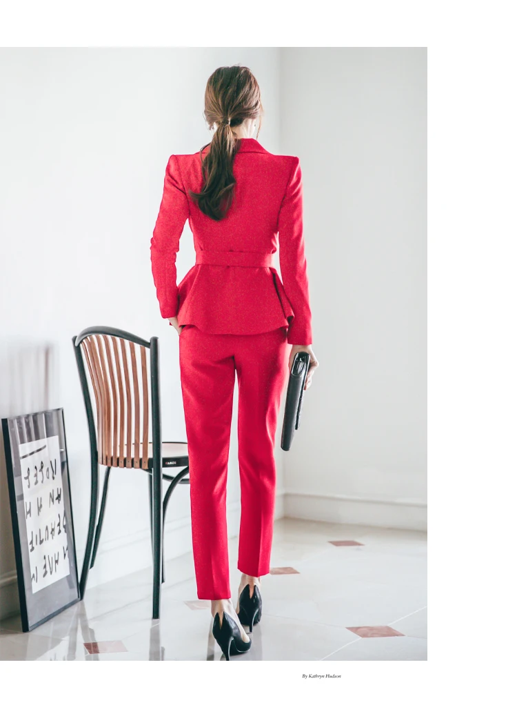 Пиджак и брюки, женские деловые костюмы, красный двубортный женский...