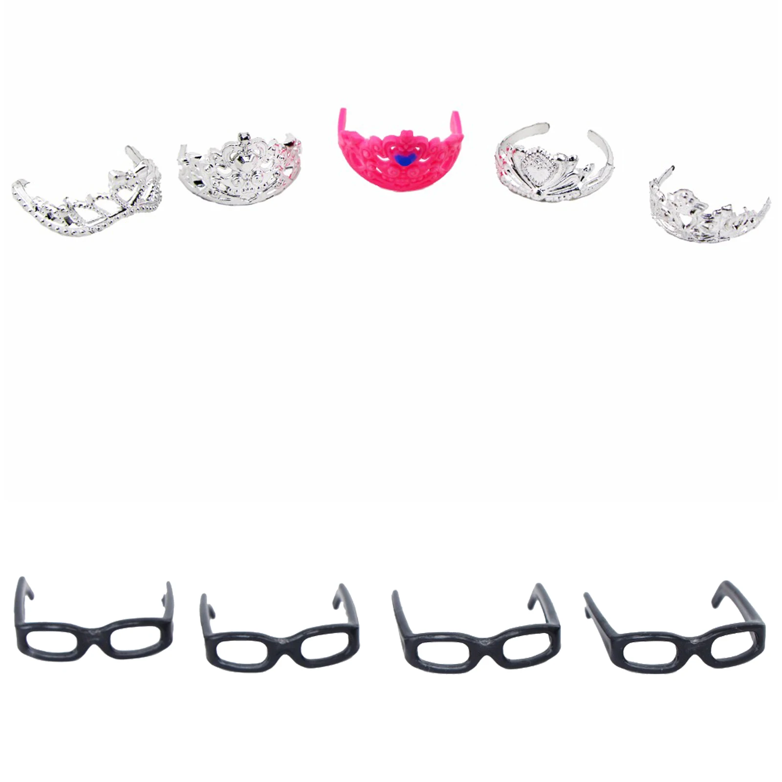 Посылка: 35 шт. =Случайные платья 10x + туфли 10x + ожерелья 6x + короны 5x + очки 4x