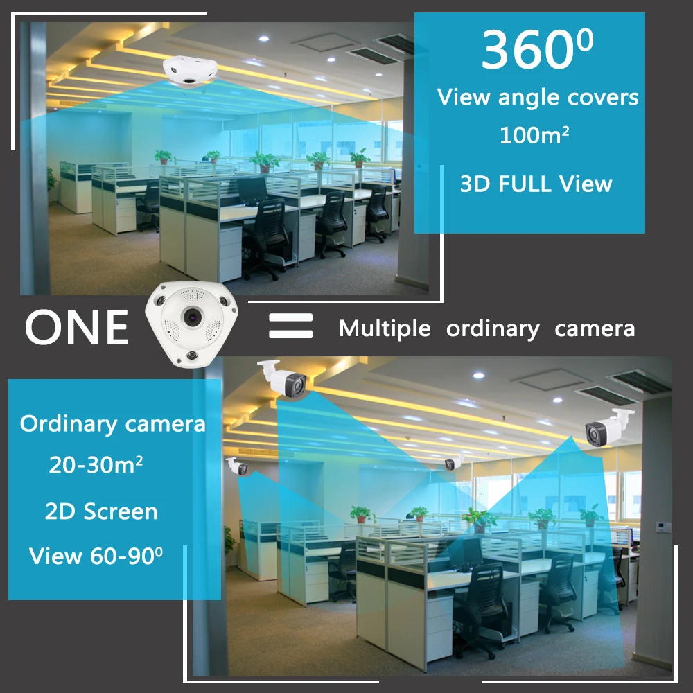 OUERTECH Full View WIFI 360 камера двухсторонняя аудио панорамная камера 1080P инфракрасное ночное видение WIFI смарт-камера безопасности IP VR камера