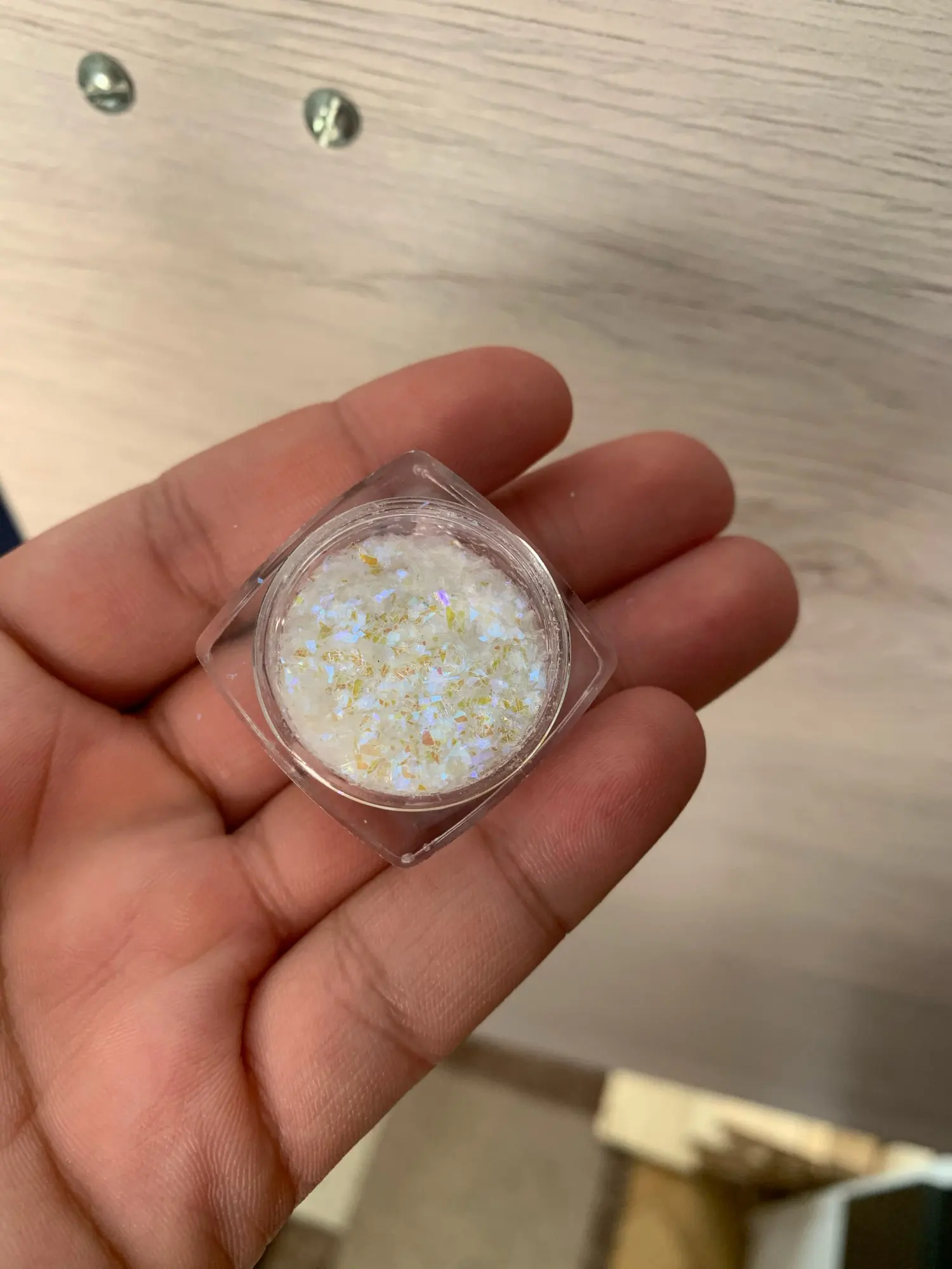 Это "битое стекло" порезанное. Блестит красиво. В аквариумные дизайны прекрасно подойдет. Посылка "шла" 3 месяца.