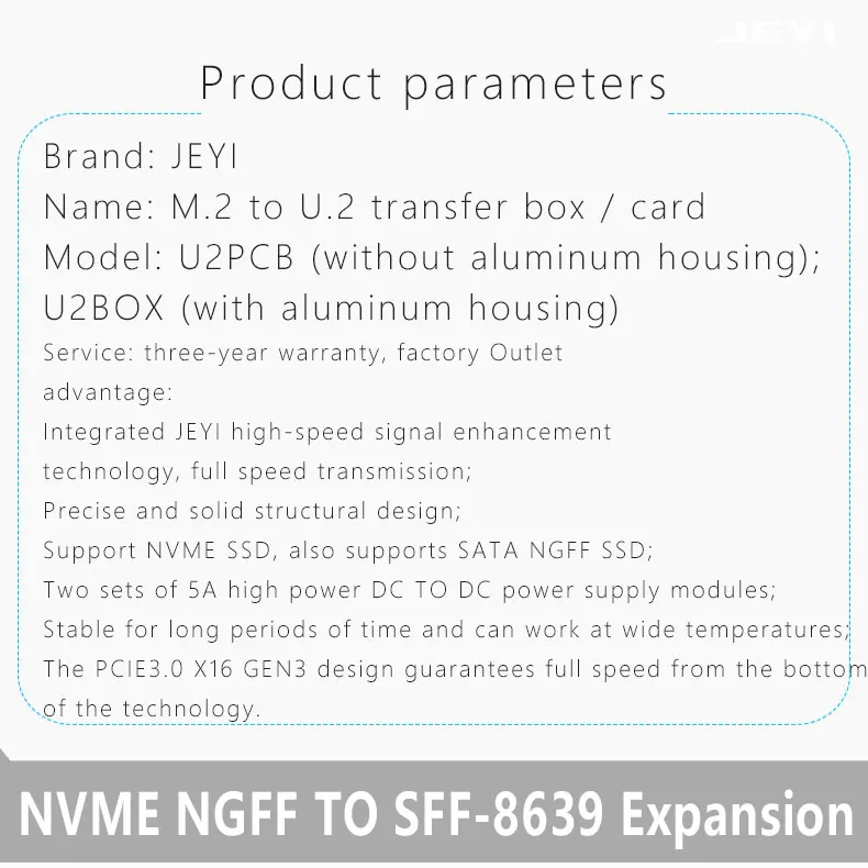 JEYI U2PCB U2 PCI-Express 3,0 4x X16 до U2 SFF-8639 адаптер NVMe PCIe SSD PCI-e к U.2 карта M.2 NGFF 2,5 'SSD к PCI-E X16 intel