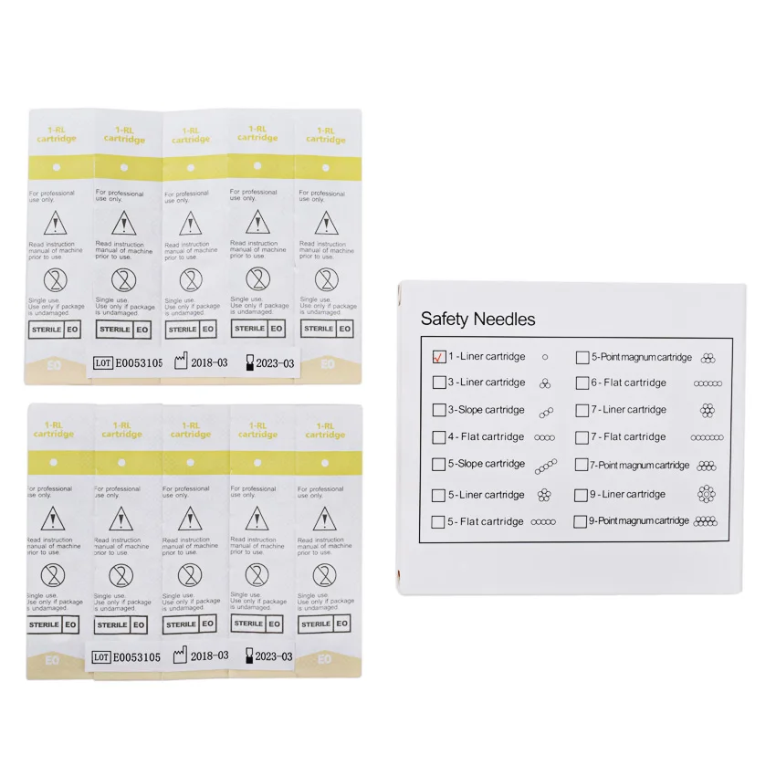 Иглы для татуировки изготовлены из нержавеющей стали 316L и пластиковой оболочки.