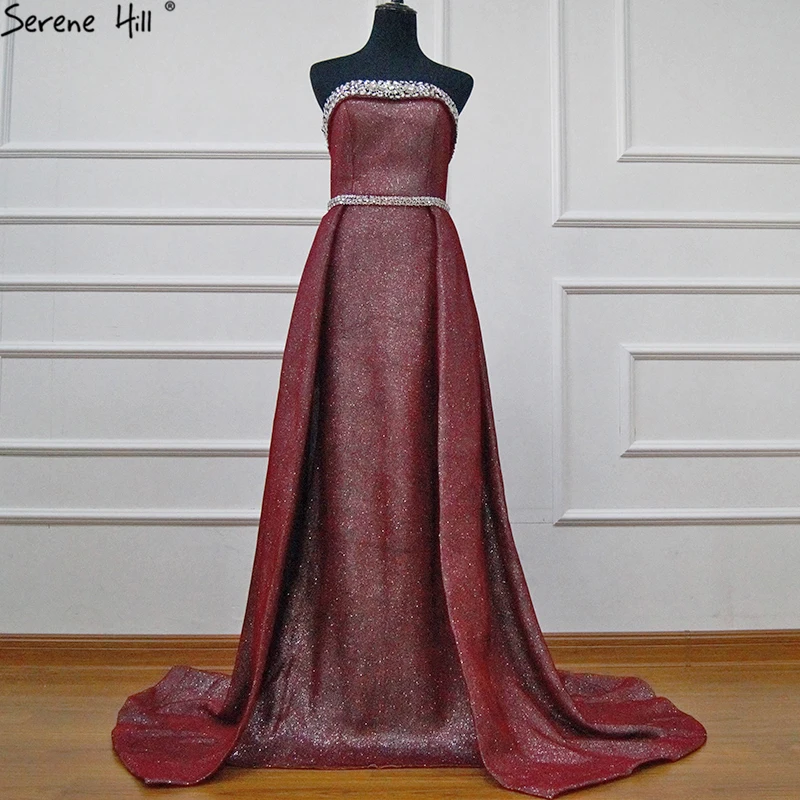 Роскошные облегающие торжественные платья цвета красного вина с бусинами; Коллекция 2021 года; Стильные модные пикантные вечерние платья русалки в Дубае; Реальное фото; LA6339