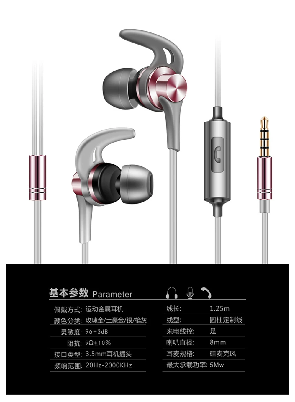 Металлические спортивные наушники-вкладыши 3,5 мм для iPhone 5S 6S Plus iPad Samsung Redmi Android Phone, музыкальный проигрыватель, наушники с микрофоном