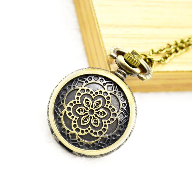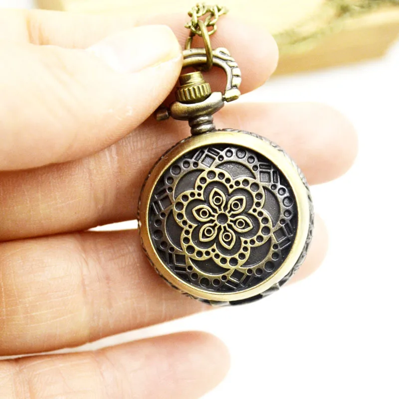 (3117) винтажное бронзовое рельефное украшение цветок кварцевые карманные часы ожерелье 12 шт.лот, бесплатная доставка