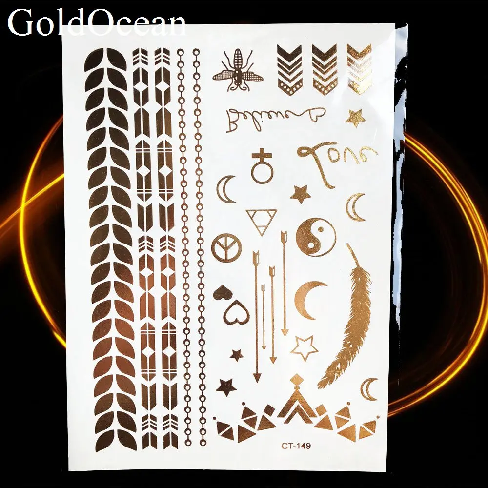 Летние золотые металлические временные тату-наклейки для девушек, боди-Арм, художественные флеш-гаджеты, тату для женщин, ручная Татуировка на палец, на лицо