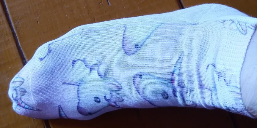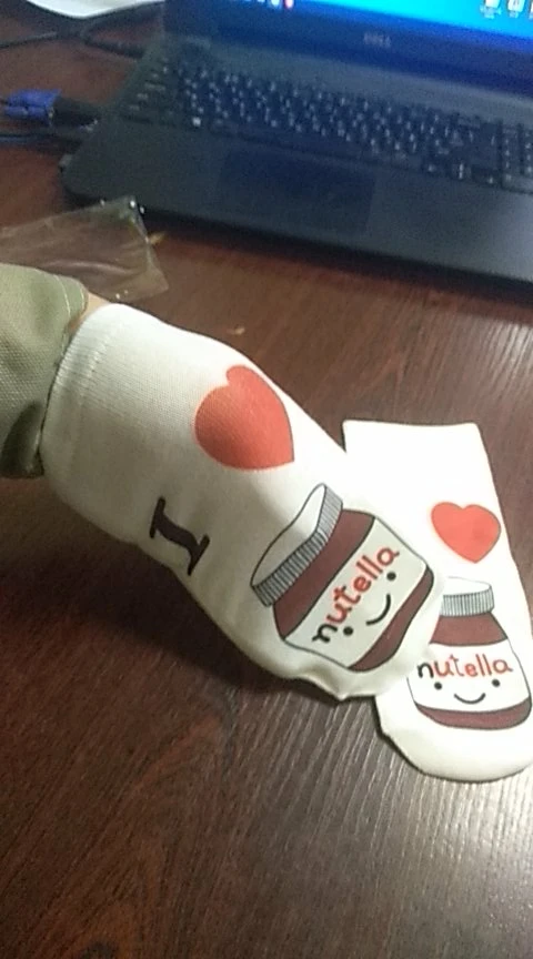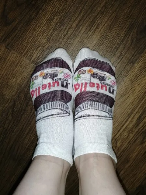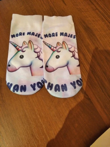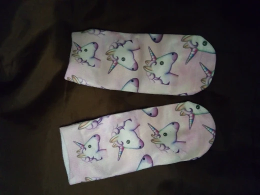 Выиграла эти носочки в разделе монетки и цент. Они классные, мягонькие, приятные, рисунок нанесён только на верхней части носка, подошва однотонная белая, на приложенных фото это видно. 2 месяца ожидания и они у меня. Посылка на территории России не отслеживалась. Продавца и товар рекомендую! Спасибо!