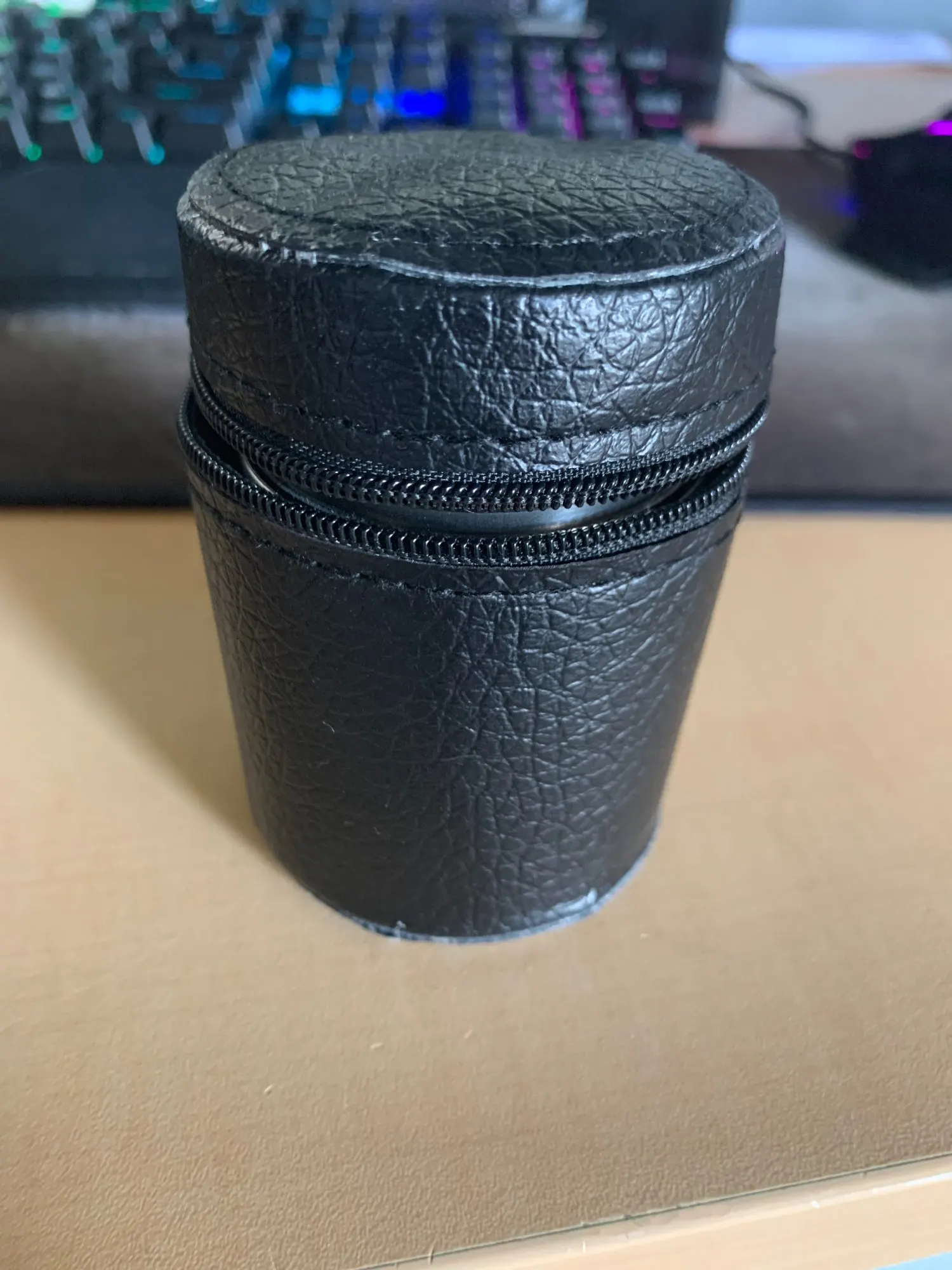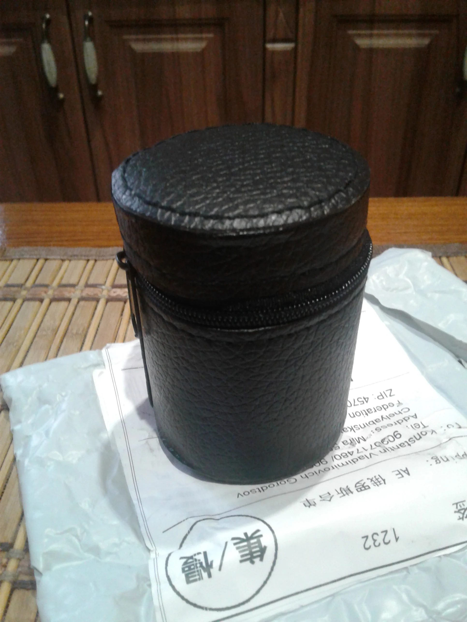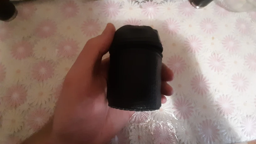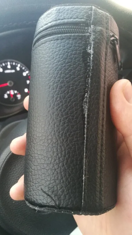 Чехол смотрится так, как будто шили вручную. Материал-дермантин. Сами стаканчики хорошие, но вопрос насколько качественные покажет время и эксплуатация.