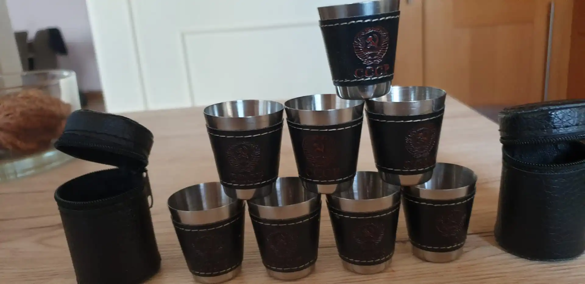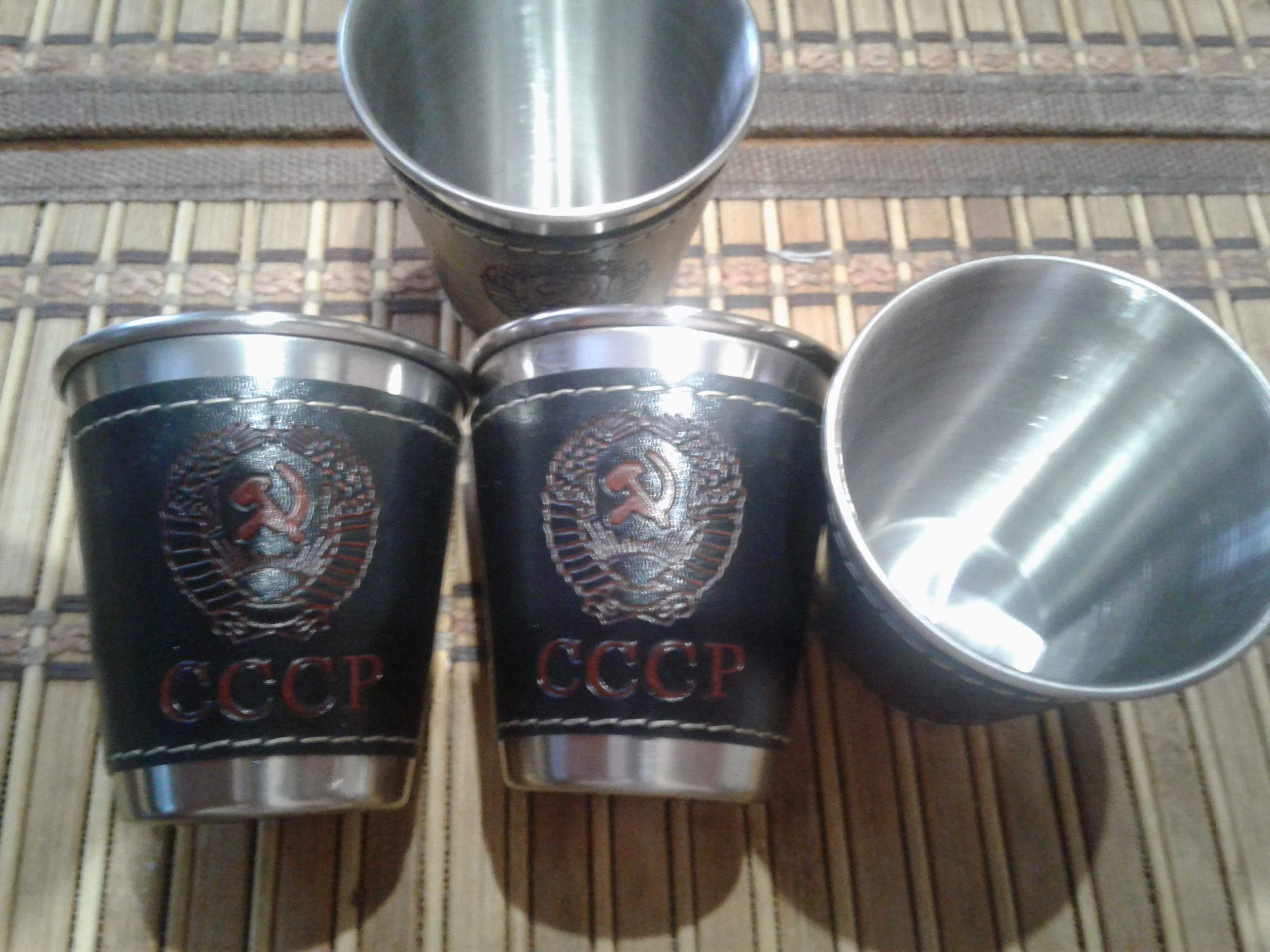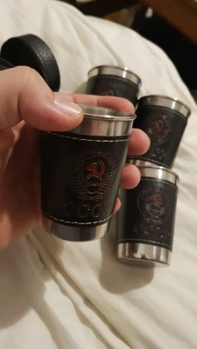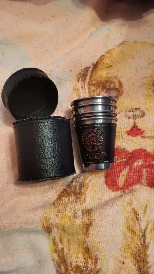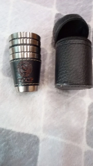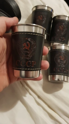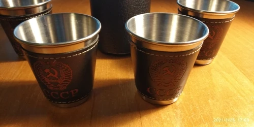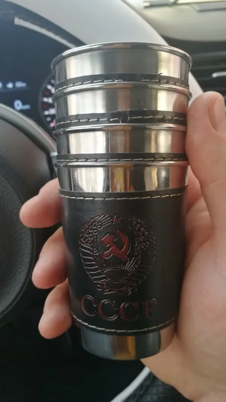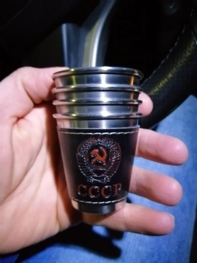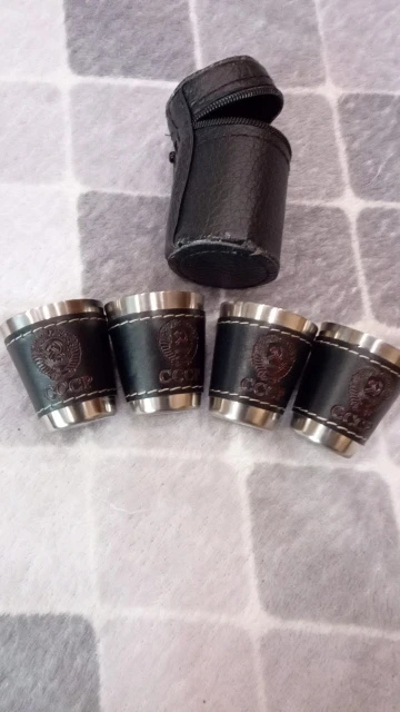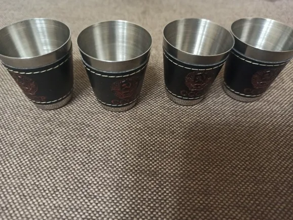 Стаканчики понравились. Вечные. Может быть, чехол из кожзама порвётся, а стаканы всегда будут целыми. Тиснение "СССР" годится вполне. Продавца рекомендую однозначно.