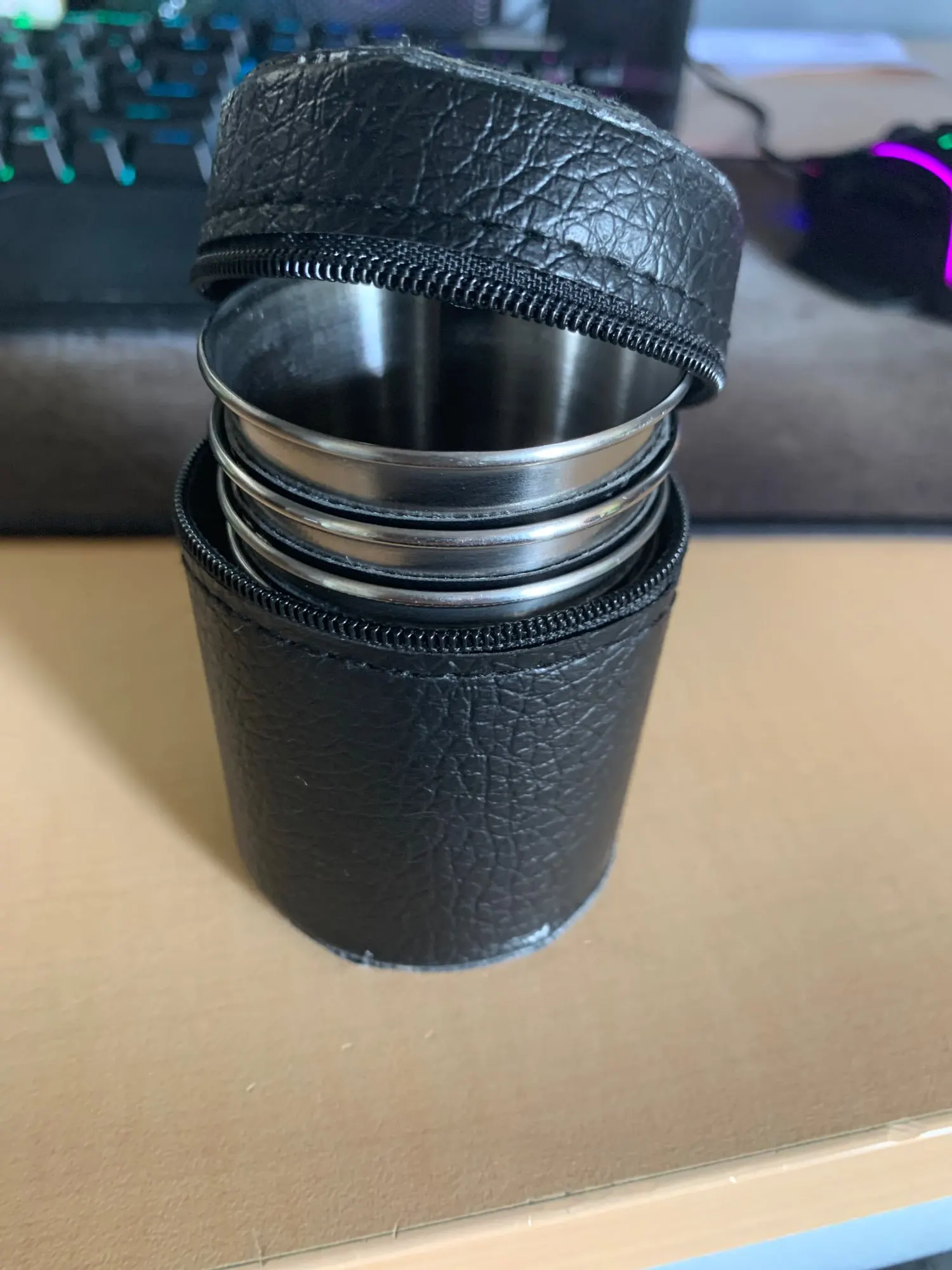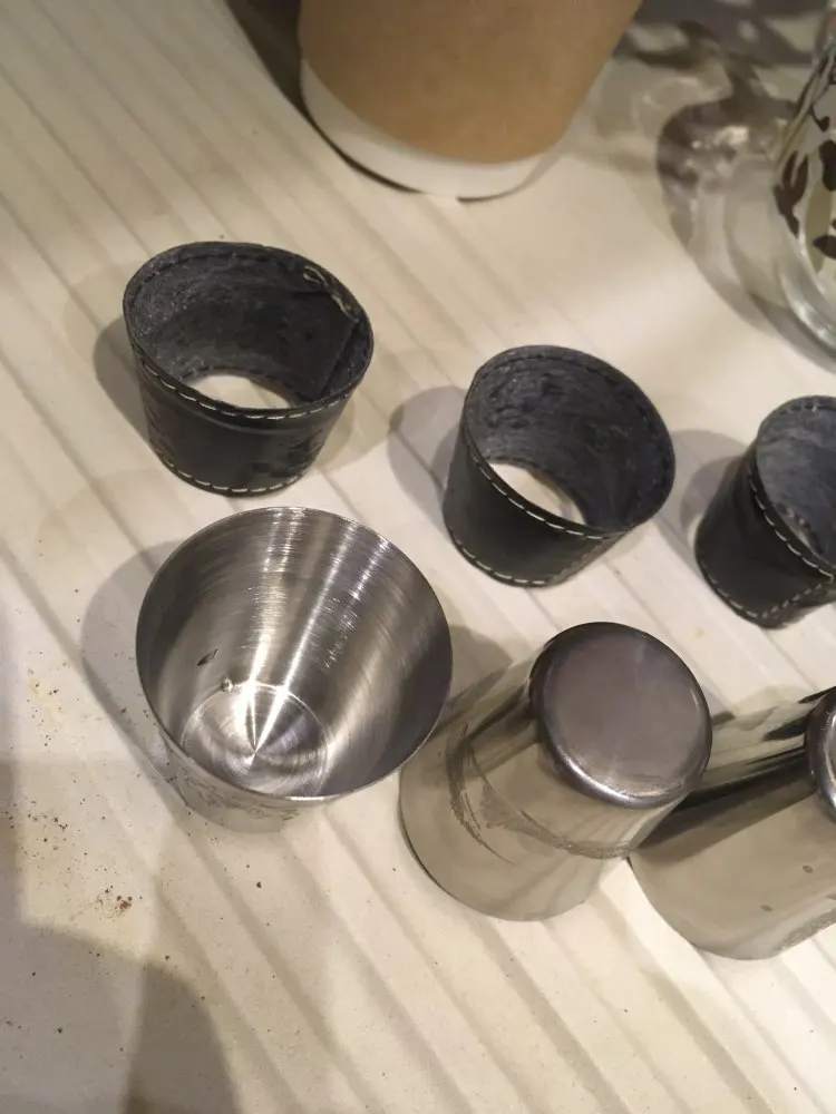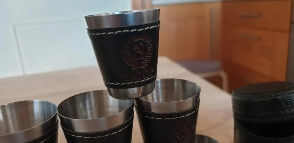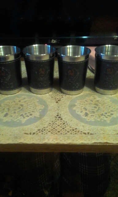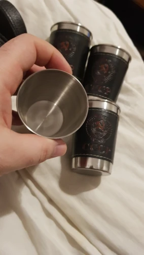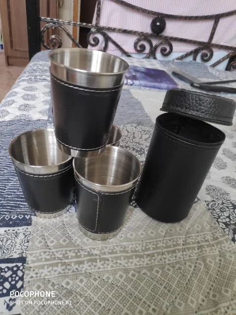 все классно четыре стакана в хорошем чехле. Также прокладочка под руку из кожи ваще советую. Чехол тоже кожаный. даже если горячее наливать не ощущается.