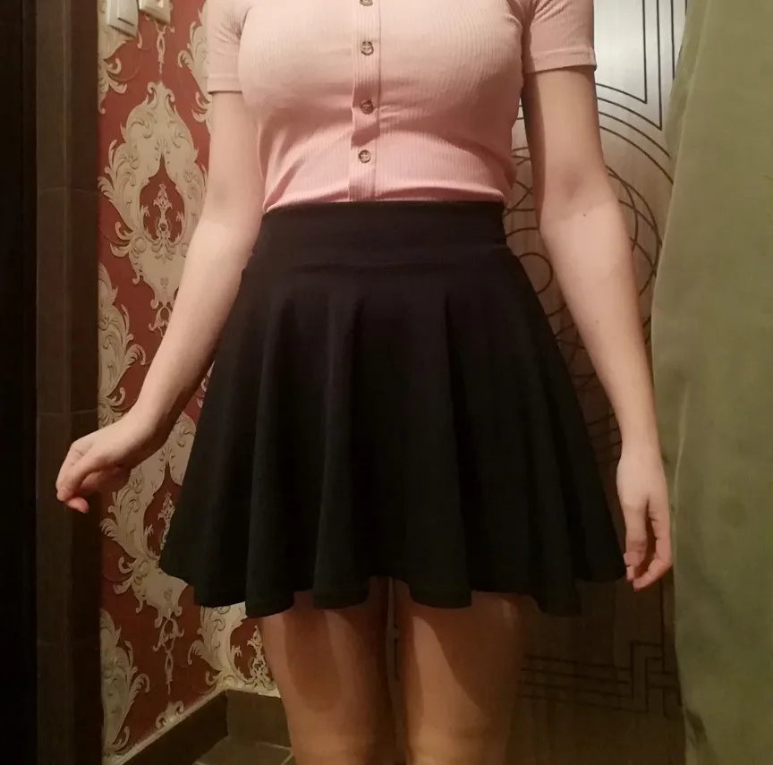 Юбка очень милая и доставлена всего за 2 недели, она точно такая же, как в описании и растягивается, но обязательно нужно выбирать размер больше. Моя Талия 68 см и L хорошо сидит, просто немного сложно получить его через бедра, если у вас широкие бедра.