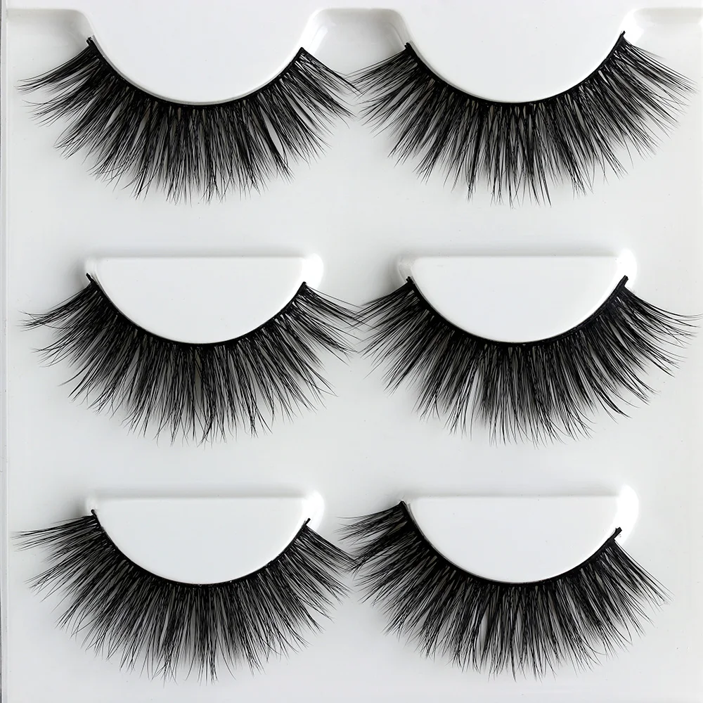 Ресницы Накладные густые объемные ручной работы, натуральные накладные ресницы для наращивания, косметические инструменты для макияжа, 3 пары