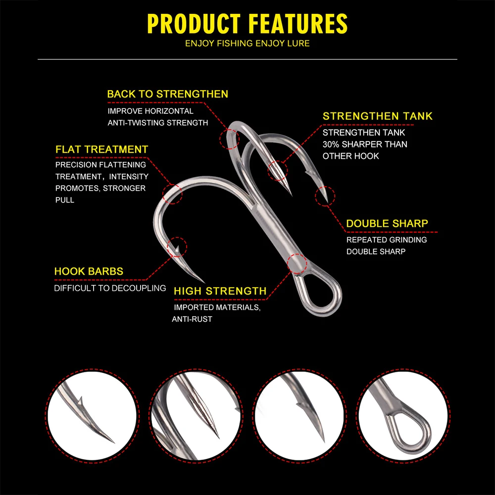 Тройной Крючок JonStar, 20 шт.лот, 2X сверхпрочный, #1 #2 #4 #6, для ловли тунца, Кита, Морская рыбалка с перевернутым Т-образным покрытием из никеля