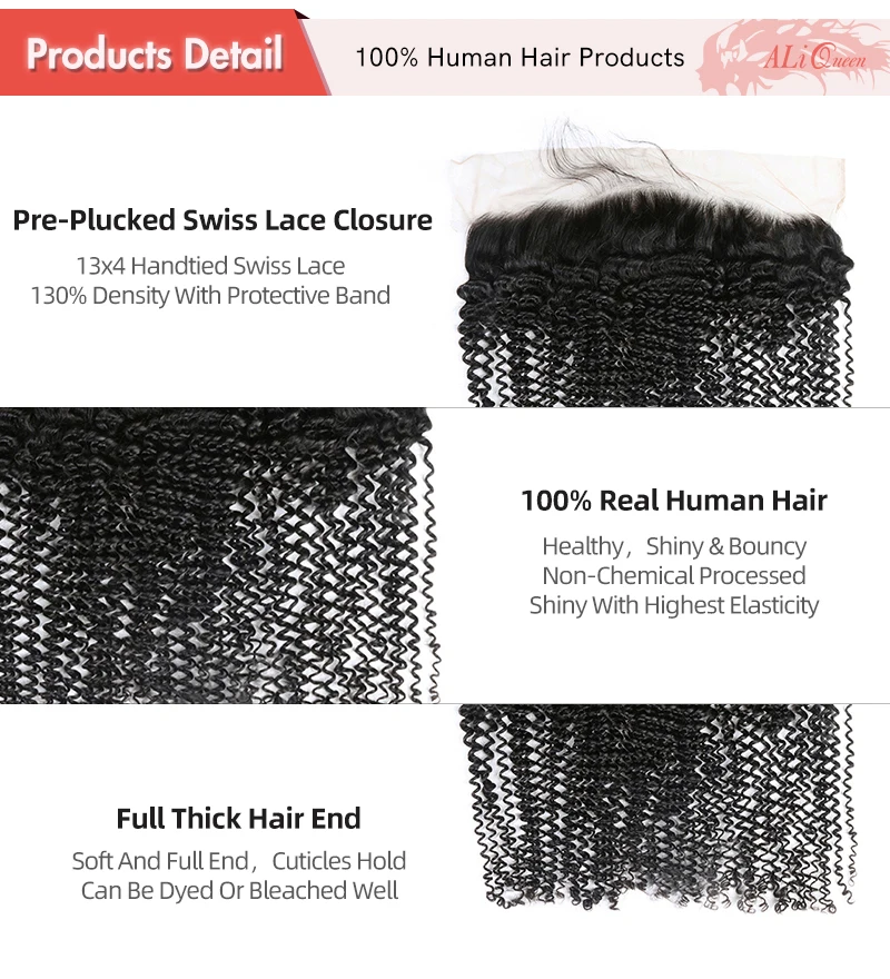 Ali Queen бразильские виргинские человеческие волосы, кудрявые волосы для ушей, кружевные фронтальные 10 "до 20", натуральный цвет, 13X4 фронтальные волосы для детей