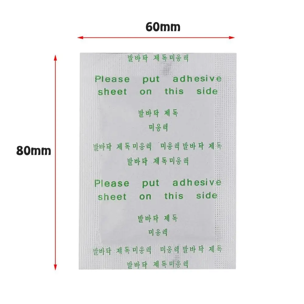 Как использовать 1. Удалите большую часть из клейкого листа и сбросьте. 2. Поместите подкладку в центр, чтобы убедиться, что зеленая надпись на пакетиках обращена вниз к клейкой поверхности. 3. Прикрепите и прочно распределите на подошве вашей ноги и удалите меньшую часть из клейкого листа. 4. Обычно допускается от 8 до 12 часов полного поглощения, прежде чем снимать колодки. Спецификация: Состояние: абсолютно новый Тип: Здоровый продукт Размер: 110*80 мм Цвет: белый Посылка включает в себя: 100 шт. x патч для ног Примечание: Не надевайте на открытую рану. Если у вас аллергия, не используйте эти подушечки. Этот продукт не предназначен для диагностики или лечения любых заболеваний. Если у Вас возникли какие-либо заболевания, обратитесь к врачу. Мы не связаны с производственной компанией.