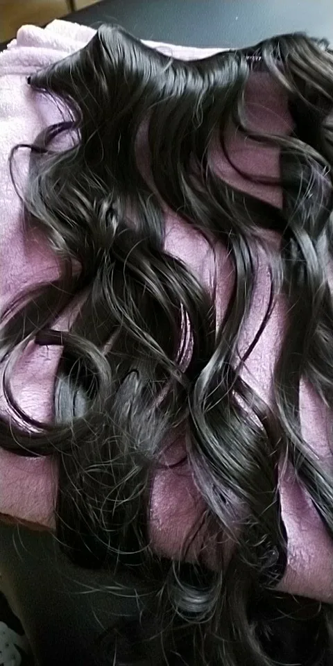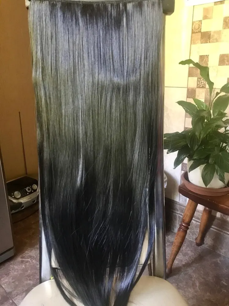 Волосы бомба хоть на настоящие и не похожи, но смотрятся очень круто, держатся хорошо, но одевать не очень удобно возле ушей торчит основа и иза этого не удобно заплетать причёски и закинуть свои волосы за ухо. Волосы густые и тяжеленькие, это такой кайф когда я их одела, ощущения не передаваемые)