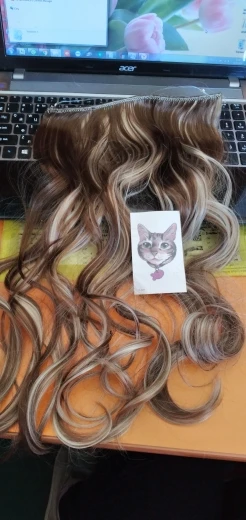 Волосы мягкие,не прям видно что искусственные,но на резинке немного не понятно на голове выглядит,но для объёма пойдёт.Больше месяца шло,в подарок переводилки положили