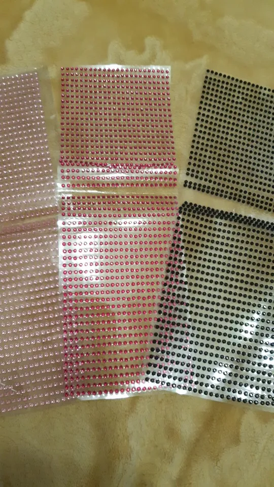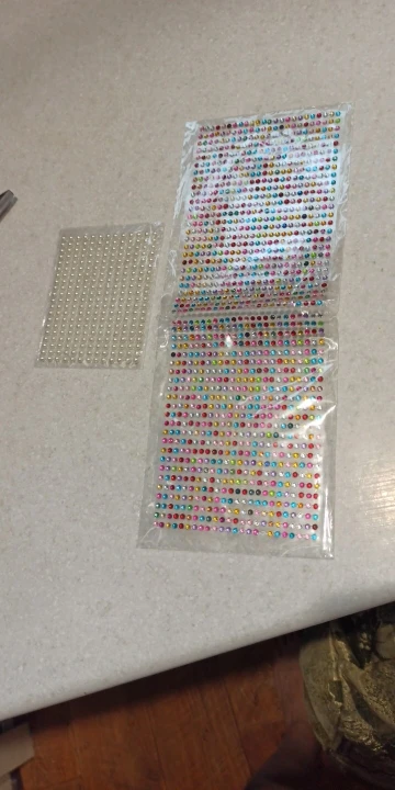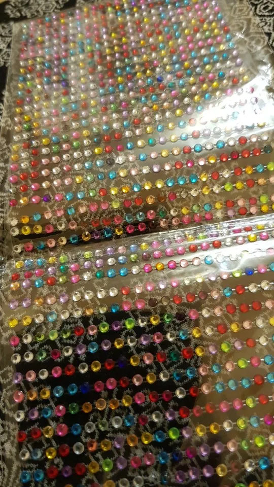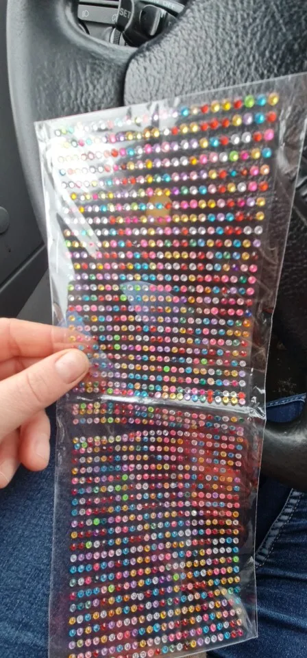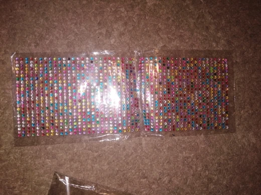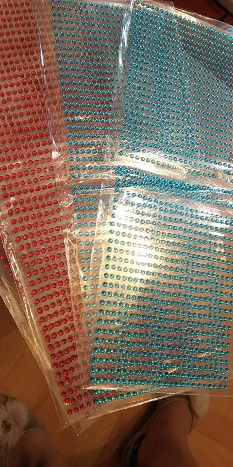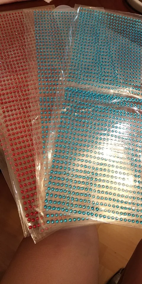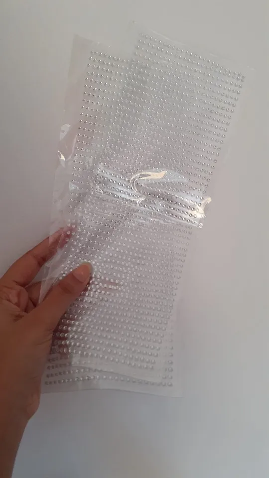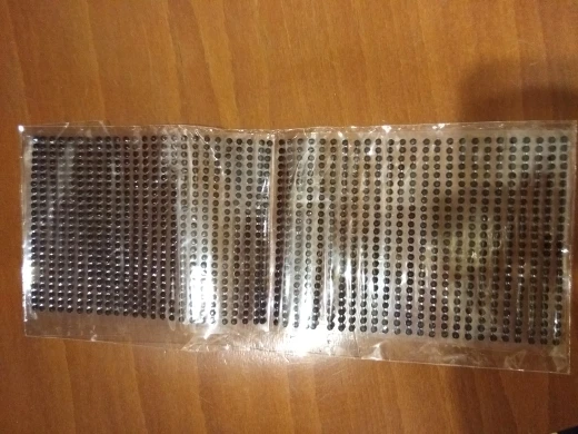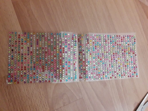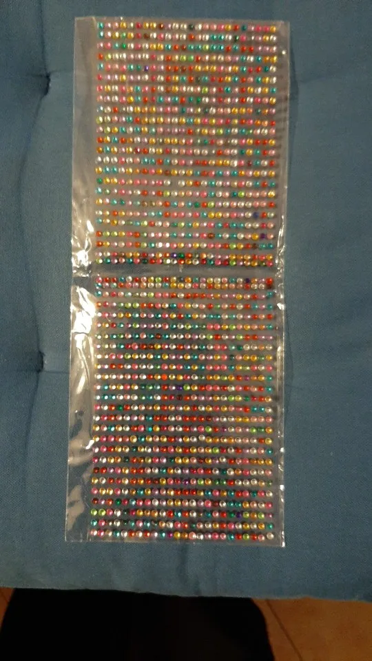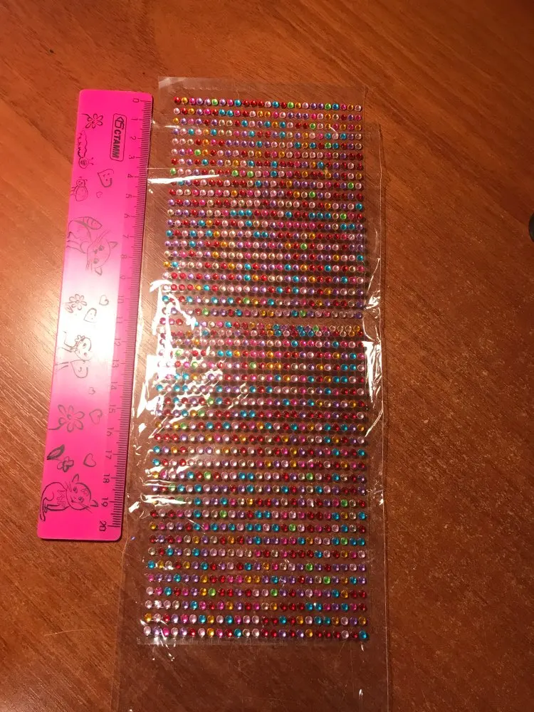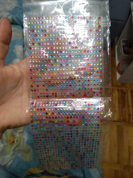 До Воронежа шло 2 с половиной месяца, продавец отправил быстро. В одной упаковке 2-х штук не было, но не страшно, ведь, как и описано их там 1200шт. Клеятся хорошо, размер 3мм идеальный. Каждый ряд на самоклеящейся ленте, поэтому, чтобы взять каждую штуку отдельно, нужно нарезать эту ленту