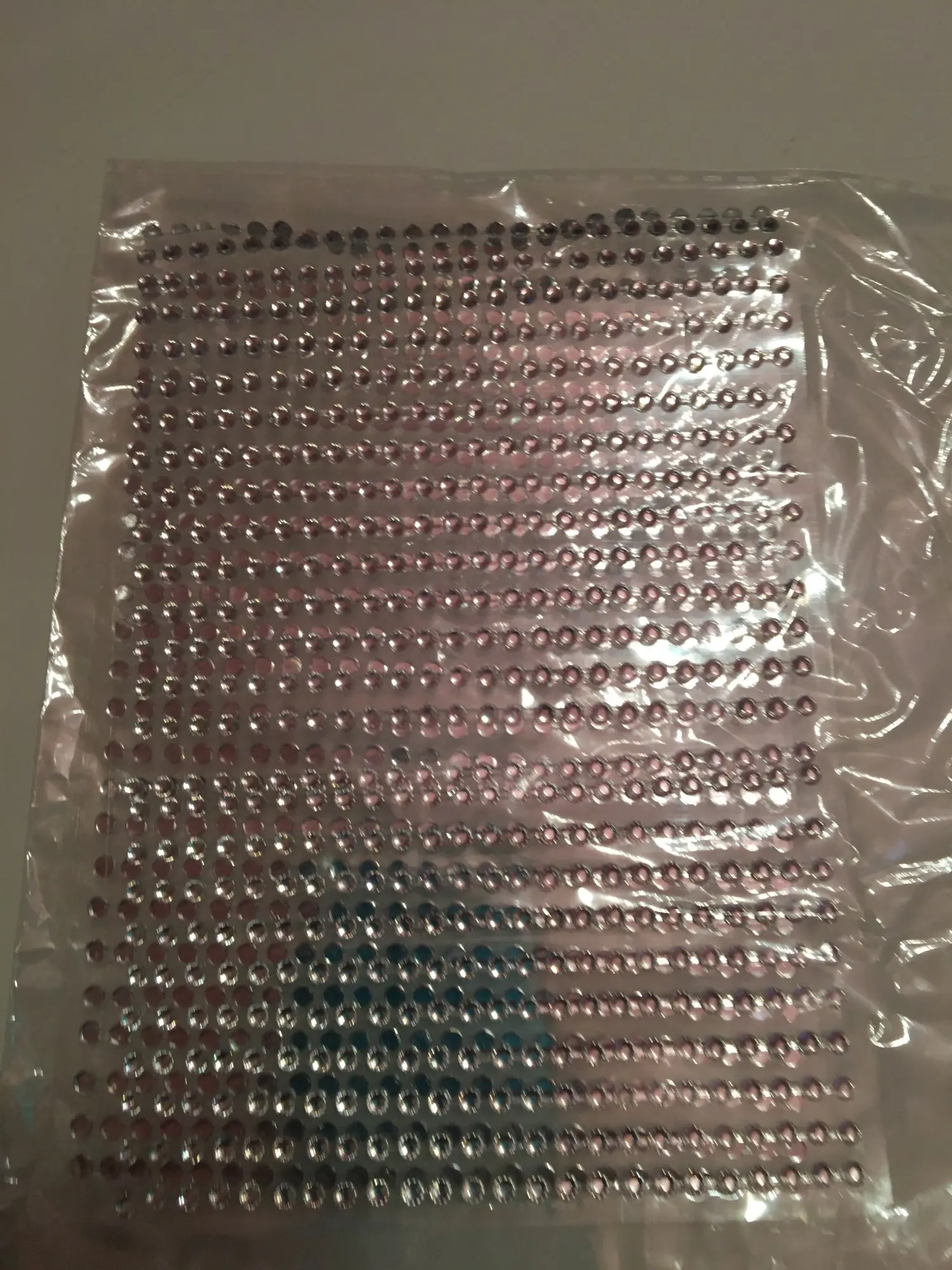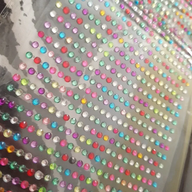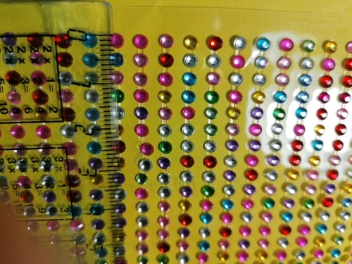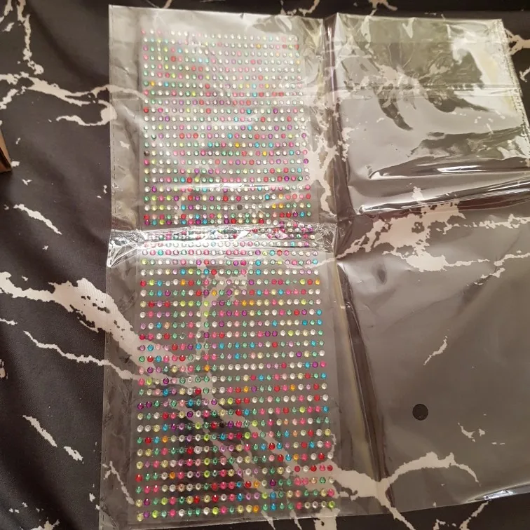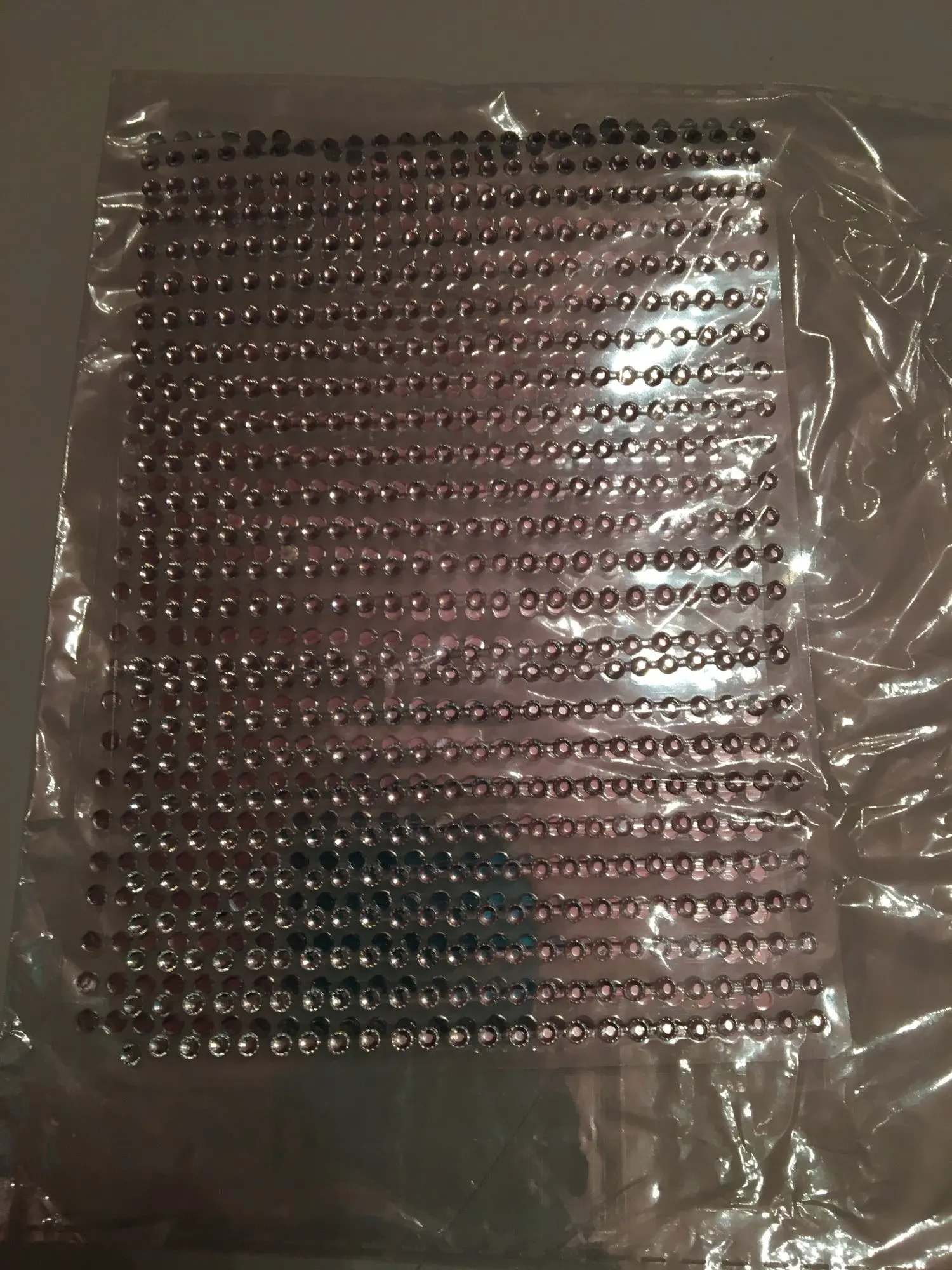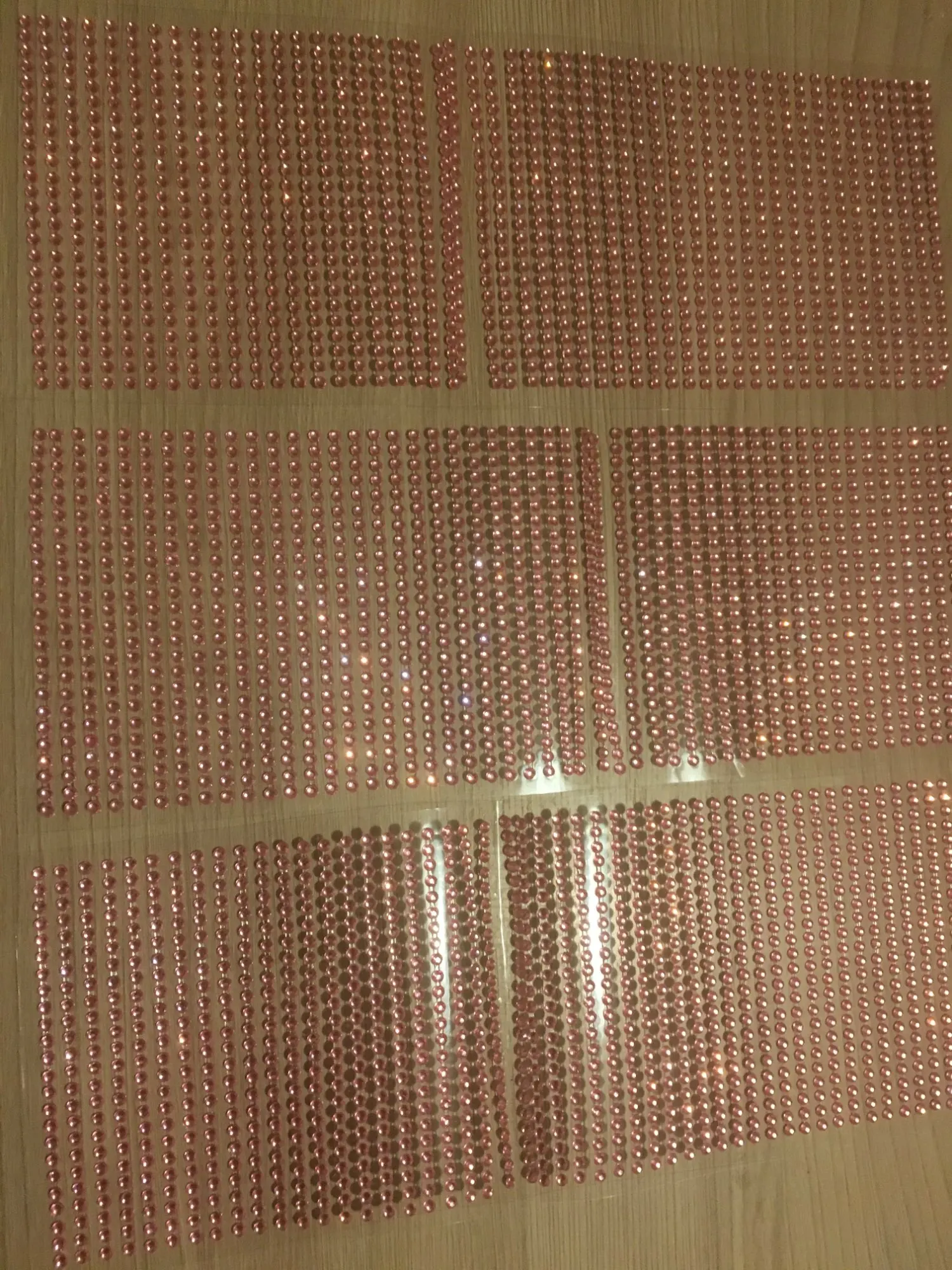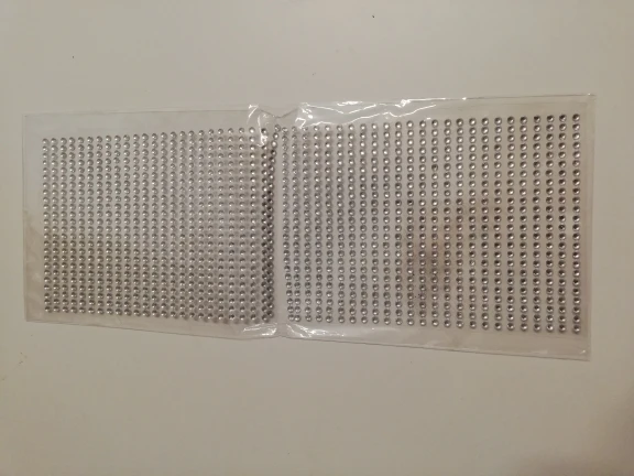 До Воронежа шло 2 с половиной месяца, продавец отправил быстро. В одной упаковке 2-х штук не было, но не страшно, ведь, как и описано их там 1200шт. Клеятся хорошо, размер 3мм идеальный. Каждый ряд на самоклеящейся ленте, поэтому, чтобы взять каждую штуку отдельно, нужно нарезать эту ленту
