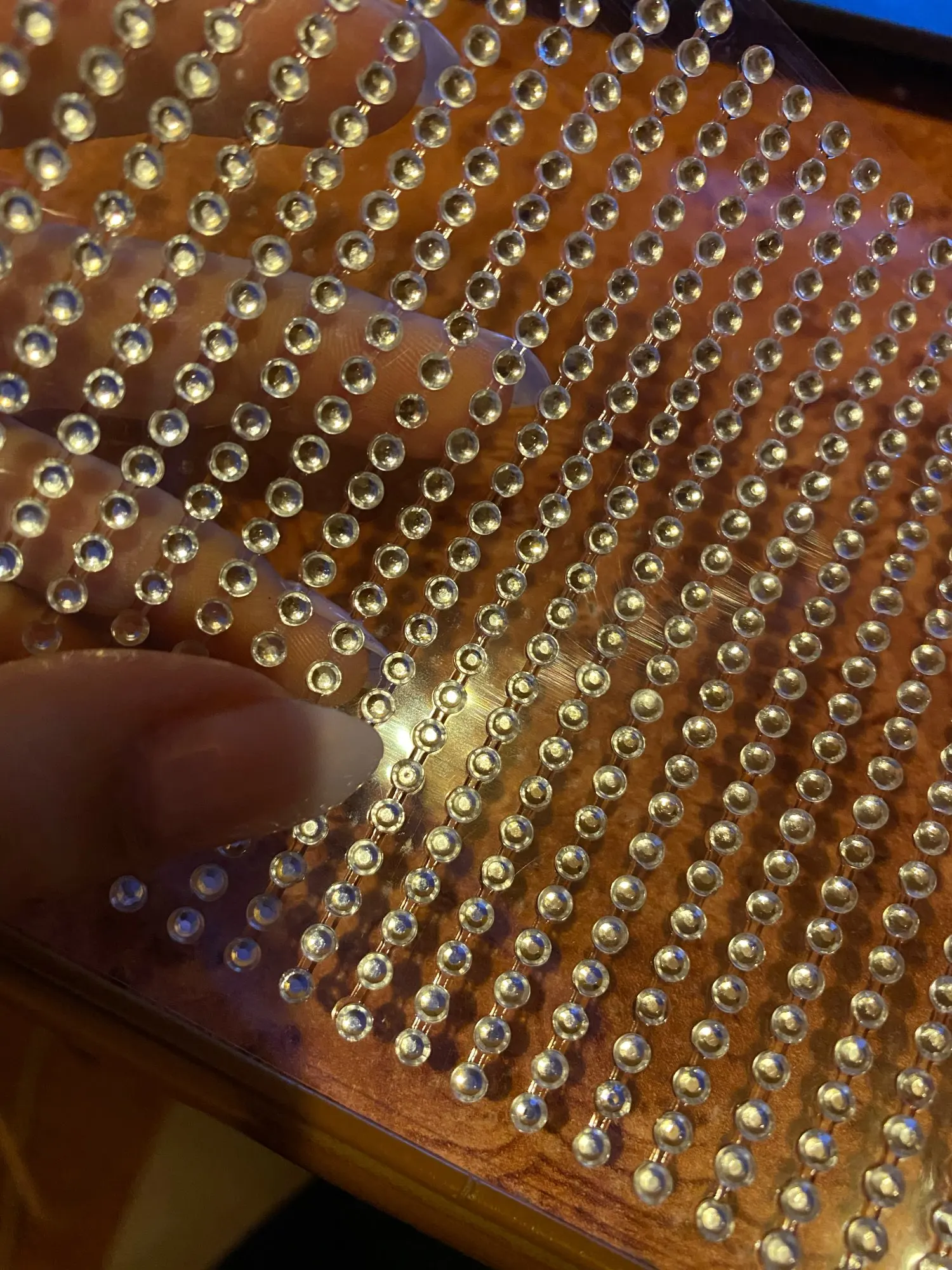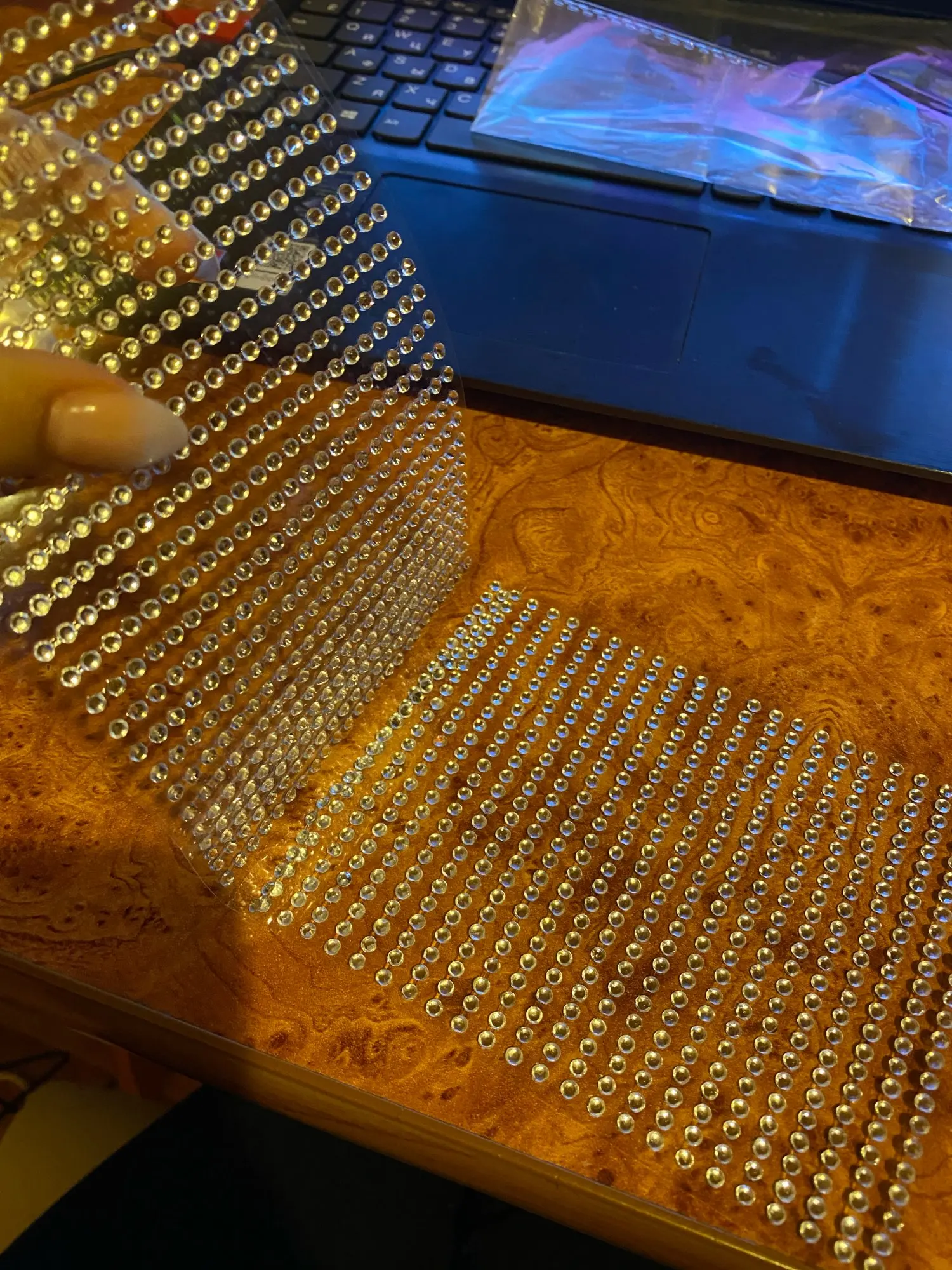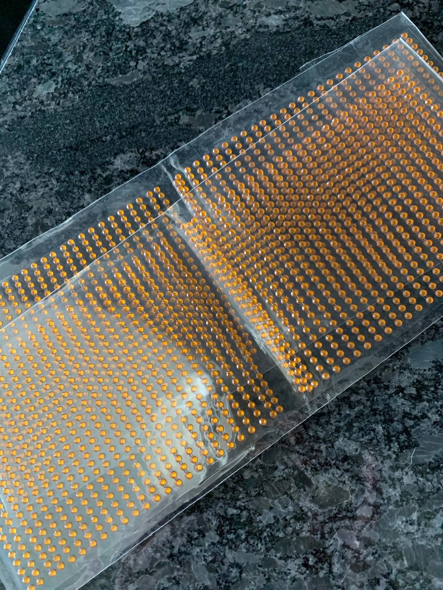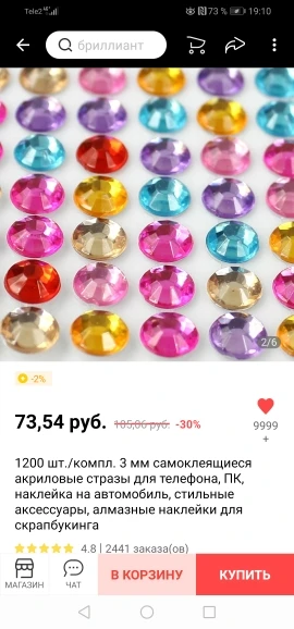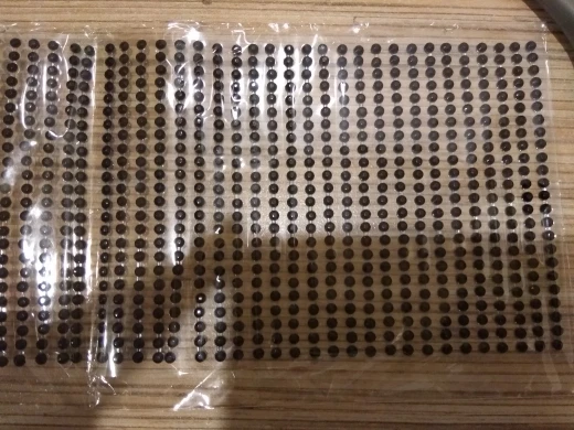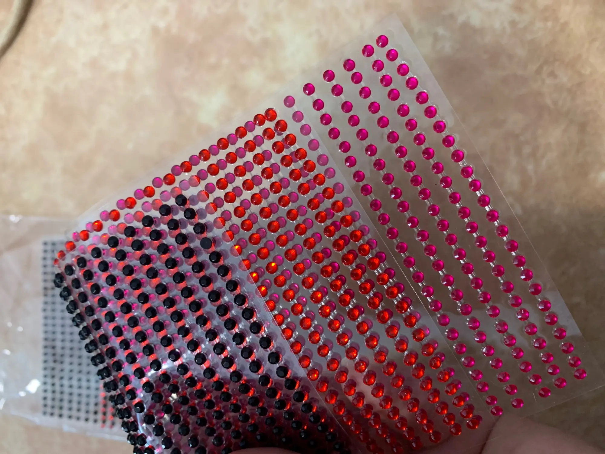 До Воронежа шло 2 с половиной месяца, продавец отправил быстро. В одной упаковке 2-х штук не было, но не страшно, ведь, как и описано их там 1200шт. Клеятся хорошо, размер 3мм идеальный. Каждый ряд на самоклеящейся ленте, поэтому, чтобы взять каждую штуку отдельно, нужно нарезать эту ленту