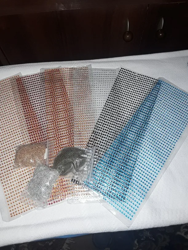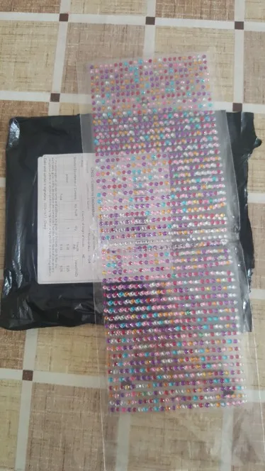 Стразы явно отличаются от фото продавца. Во-первых, неожиданно было (при заказе практически без отзывов), что они по клеевым полоскам, а не каждая с клеевым основанием. Во-вторых, они всё же мелковаты, чуть меньше заявленных 3мм(для тех, кому принципиально). Если б знала, то не купила, поэтому запросила небольшую компенсацию, продавец нехотя вернул.