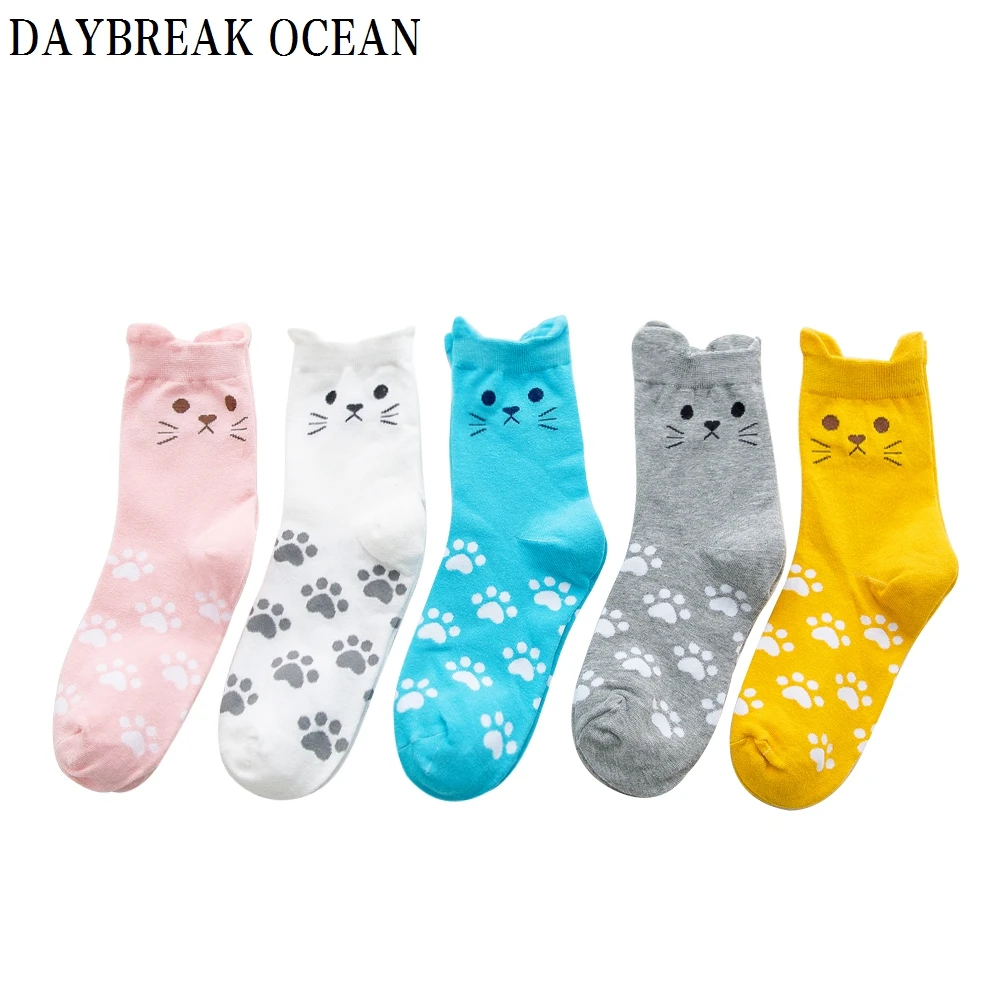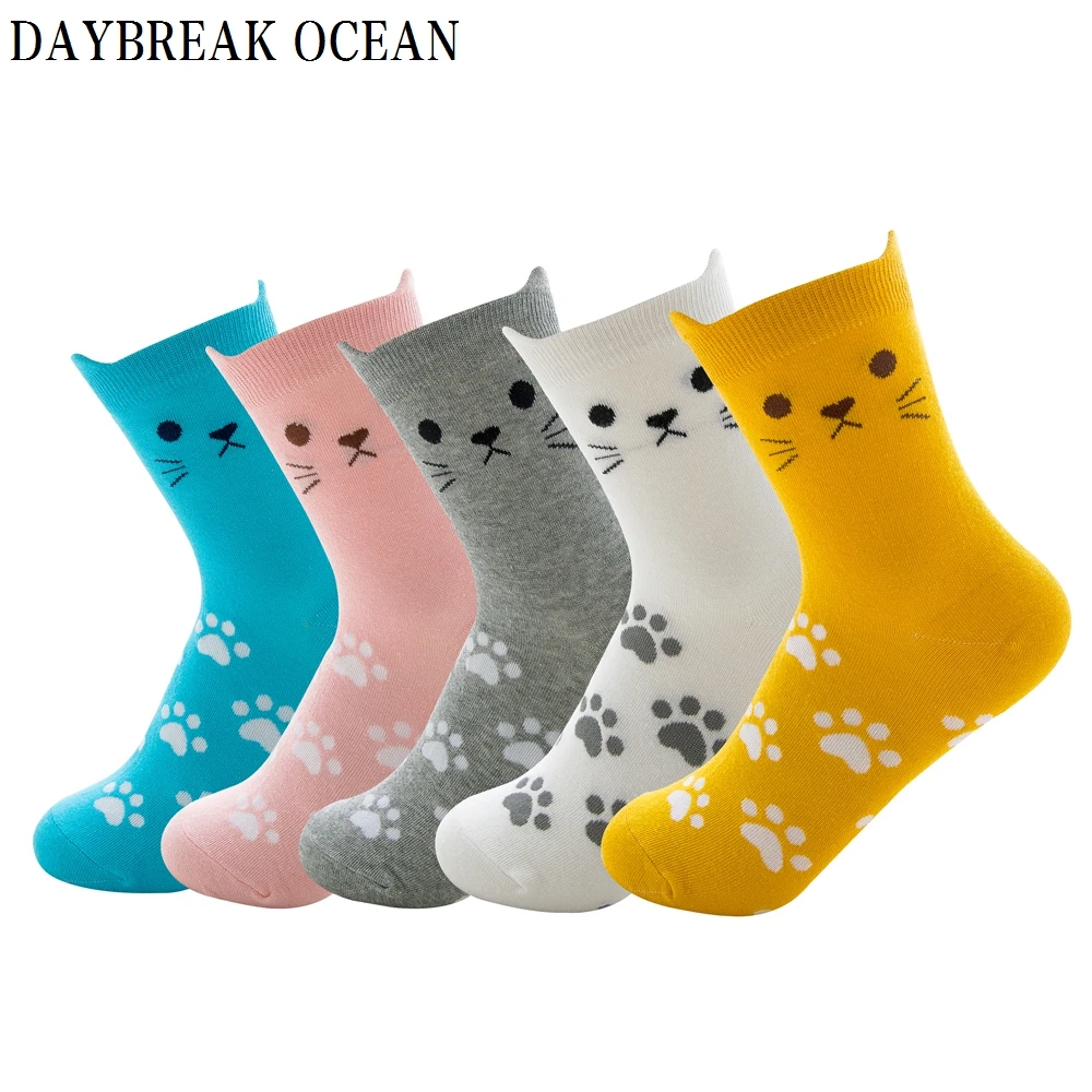 5 пар забавных милых женских носков с рисунком кота из мультфильма, хлопковые мягкие удобные носки, женские осенне-зимние повседневные модные милые носки для девочек