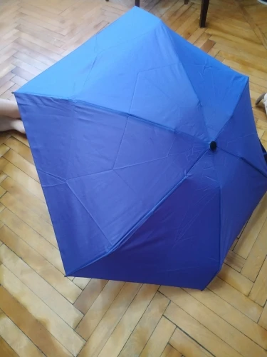 Zdjęcie pokazujące parasolkę trzymaną w dłoni przez kobietę to ściema i wprowadza w błąd. Jak ogromną musi mieć dłoń, aby złapać tak tą parasolkę. Maluchem nie jestem 182cm , ale nie mam szans złapać tak parasolki. To jest zdjęcie innej parasolki o wielkości około 11cm, albo edytowane w programie graficznym. Gwoli sprawiedliwości - sprzedawca w opisie napisał 17 cm (chociaż bliżej jej do osiemnastu cm). Mimo wszystko żona jest zadowolona z parasolki.