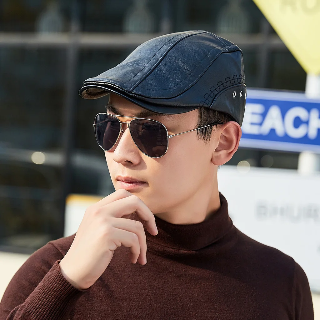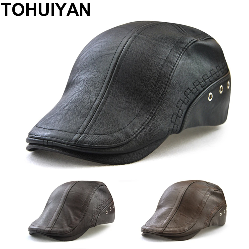 Классическая кожаная кепка TOHUIYAN для мужчин, Повседневная осенне-зимняя теплая Кепка для водителей