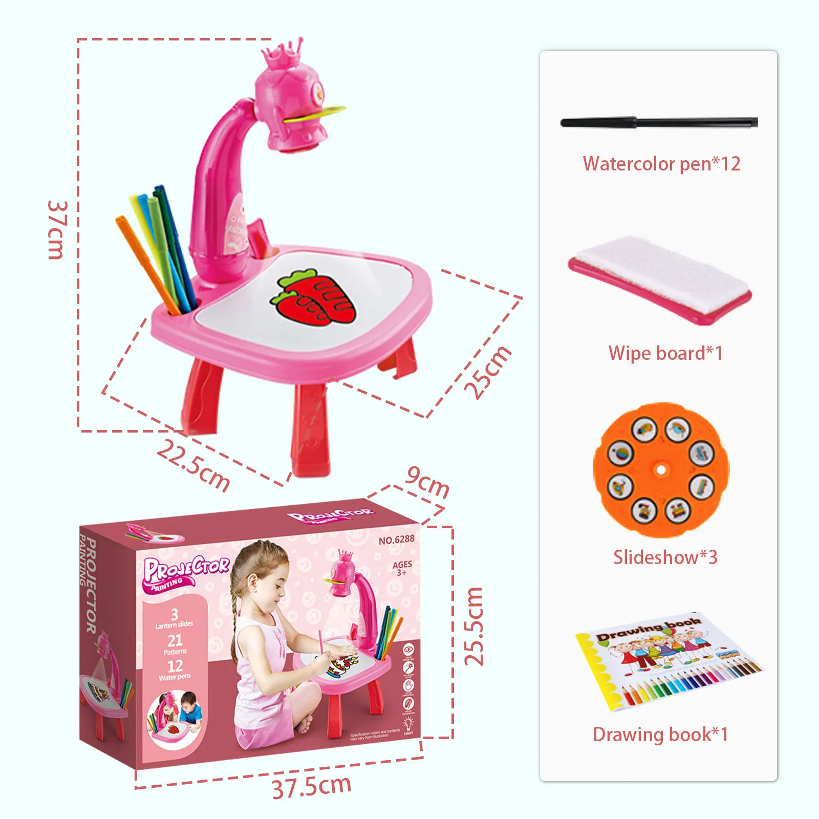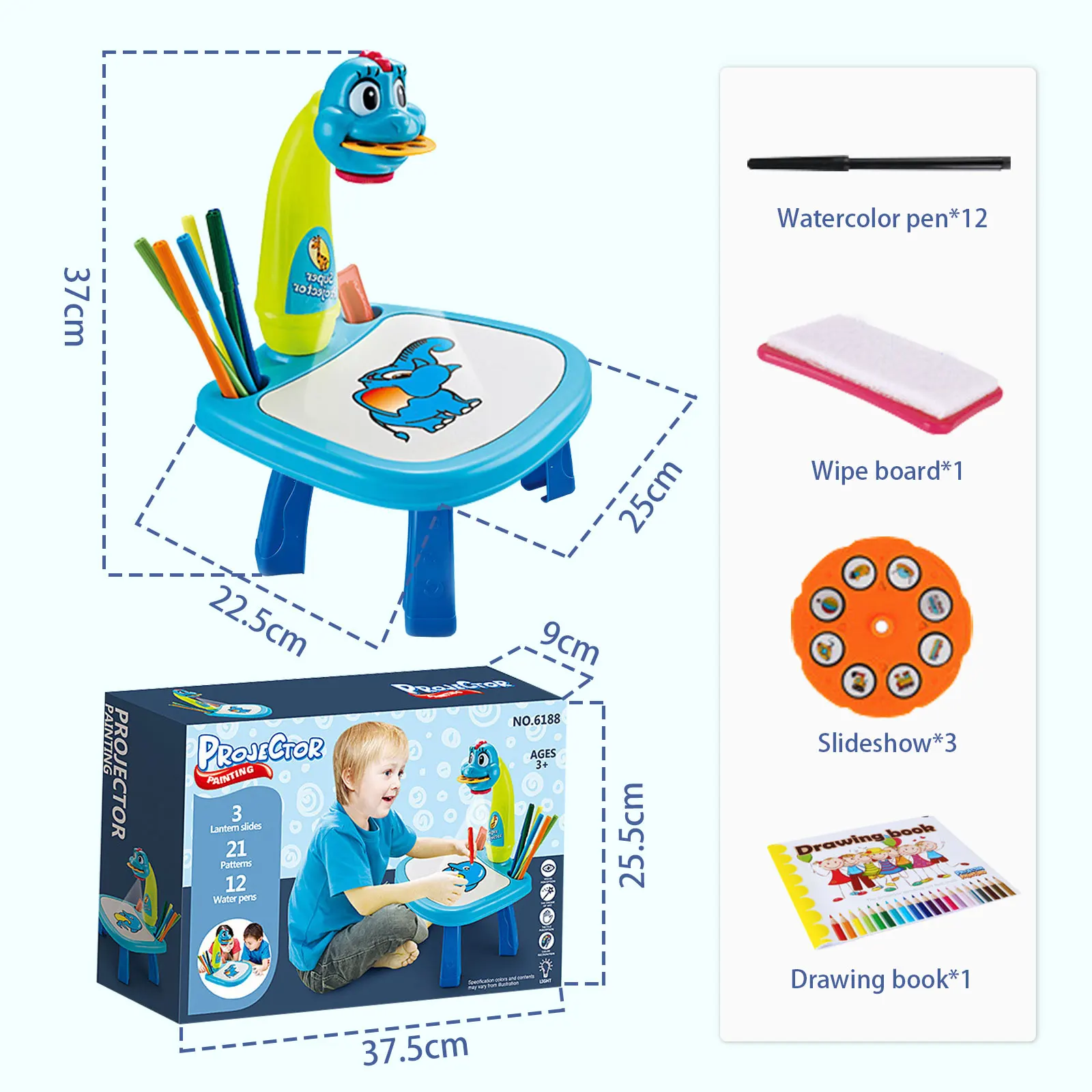 ЖК-планшет с рисунком и подсветильник кой, 6 ручек, 10 графических карт для детей, подарок на день рождения и Рождество $6,65 /Шт.Детский развивающий Музыкальный проектор для раннего обучения, проектор для рисования, настольный проектор, Настольная игрушка Детали: Дети могут рисовать на основе рисунка, проецируемого проекторомНа столе или на чертежной книге Включает3 шт. Проекционные слайдыИ каждый слайд имеет 8 Разных шаблонов (всего 24 шаблона) С музыкойЧтобы привлечь внимание детей, чтобы дольше писать и рисовать Развивает восприятие цветаИ способность воображения иПовышает интерес ребенка к рисованию Тренирует вашего ребенка использовать координацию рук, глаз и разума Спецификация: Материал: пластик Размер: 25x21x35 см Батарея: 3 батарейки AA (не входят в комплект) Доступные цвета: розовый, синий При покупке сообщите нам желаемый цвет, иначе мы отправим его наугад Посылка: 1 х стол 3 x слайд с узором 1 ластик 1 х Пустая книга для рисования 12 x ручка для рисования