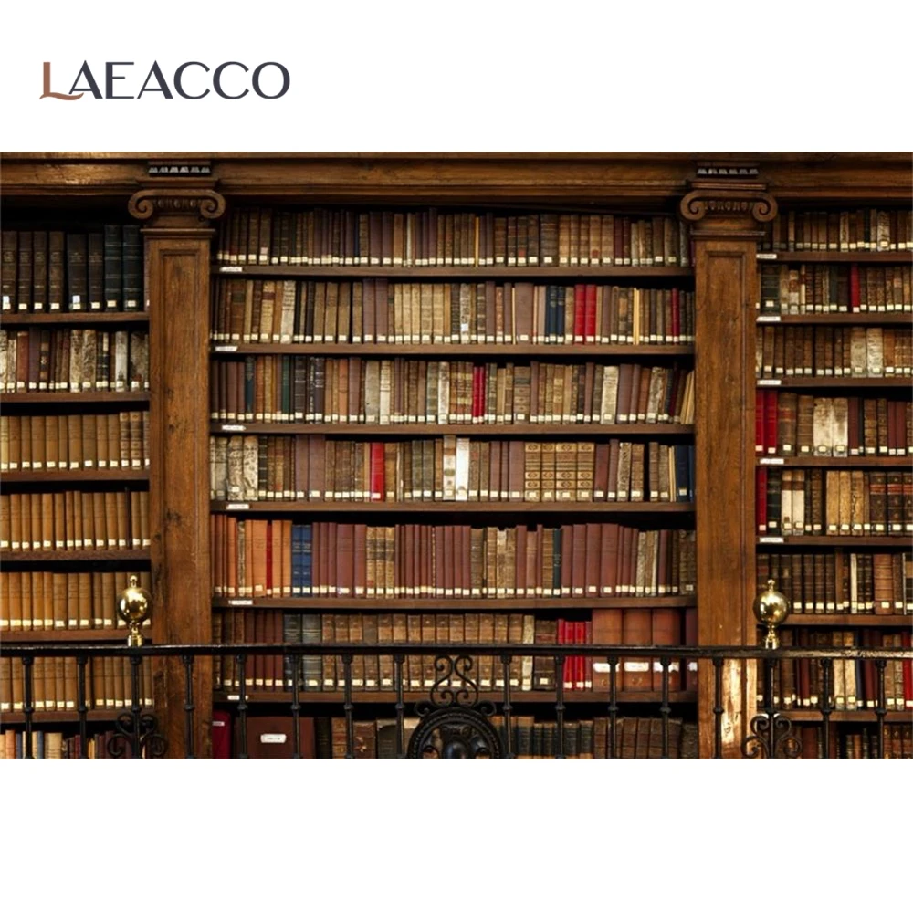 Laeacco библиотека старая деревянная книжная полка книги обучение ребенок интерьер фотографические фоны фотография фон