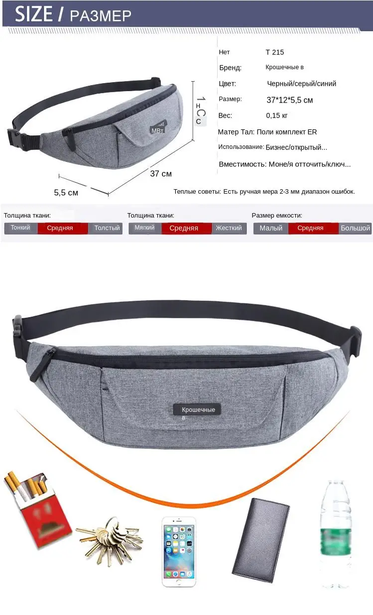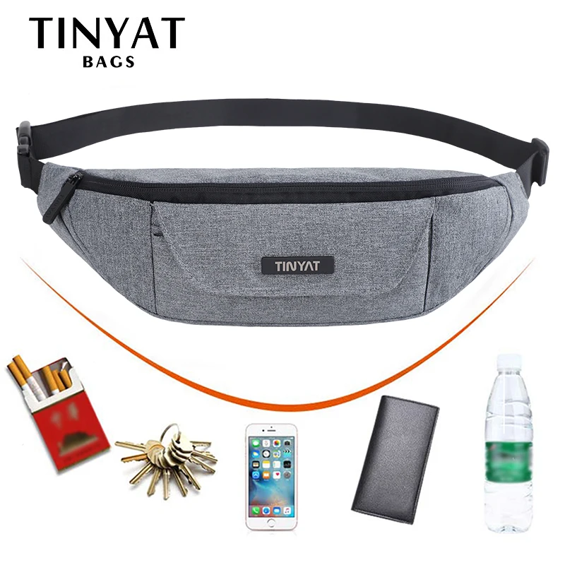 Мужская поясная сумка TINYAT, повседневная функциональная сумка с ремнем, сумка с карманами под телефон, большая холщовая сумка с 3 карманами, серого цвета сумка на пояс поясная сумка бананка барсетка rionera сумка по