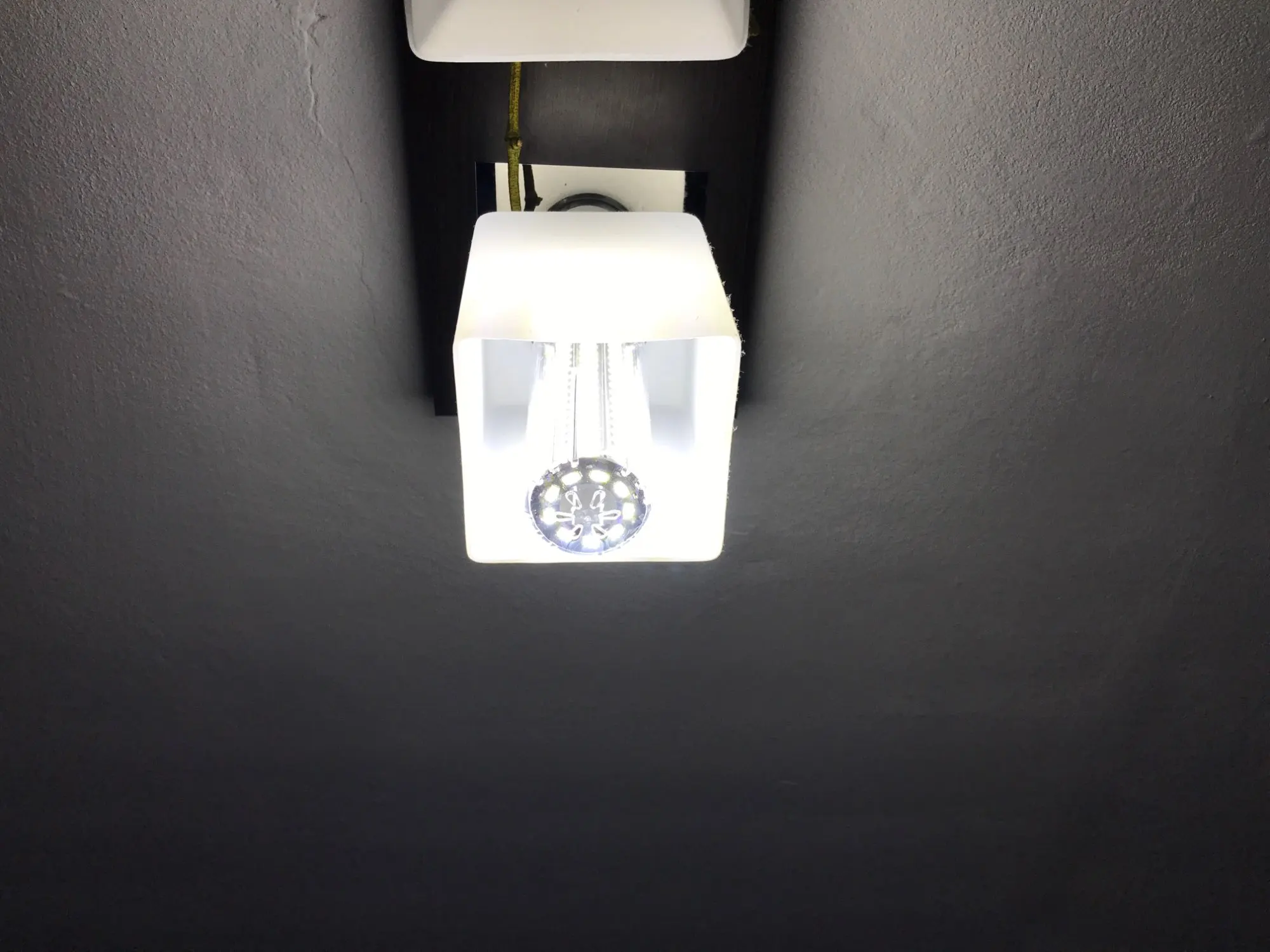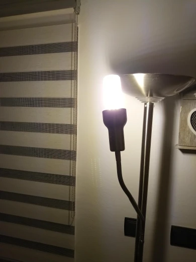 Die Beschreibung ist perfekt. Die Lampe produziert viel weniger wärme bei viel mehr Licht. Ich habe die 12W Version gekauft. Super! Das 1. Bild ist vorher mit normaler Glühlampe.