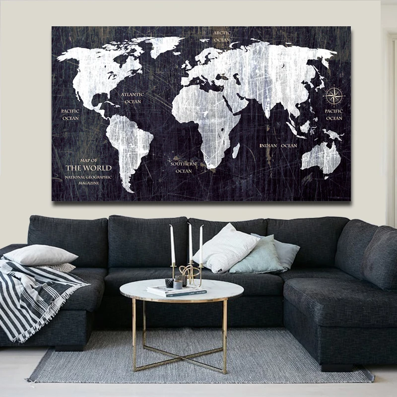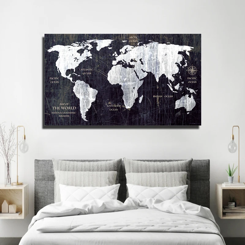 Винтажная HD карта мира, холст, рисование, печать, постер, настенные картины для гостиной, черная карта, декоративное искусство, Декор для дома