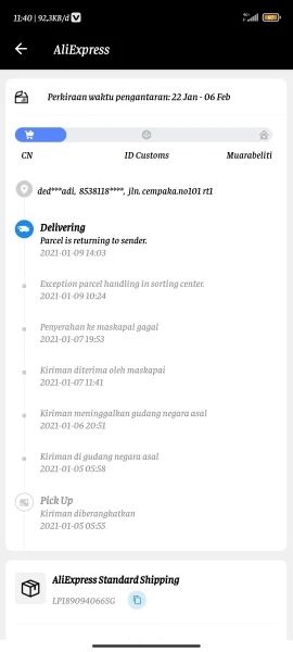По времени, когда я не искал его в почтовом отделении, мой заказ был возвращен на место происхождения. Извините за это.