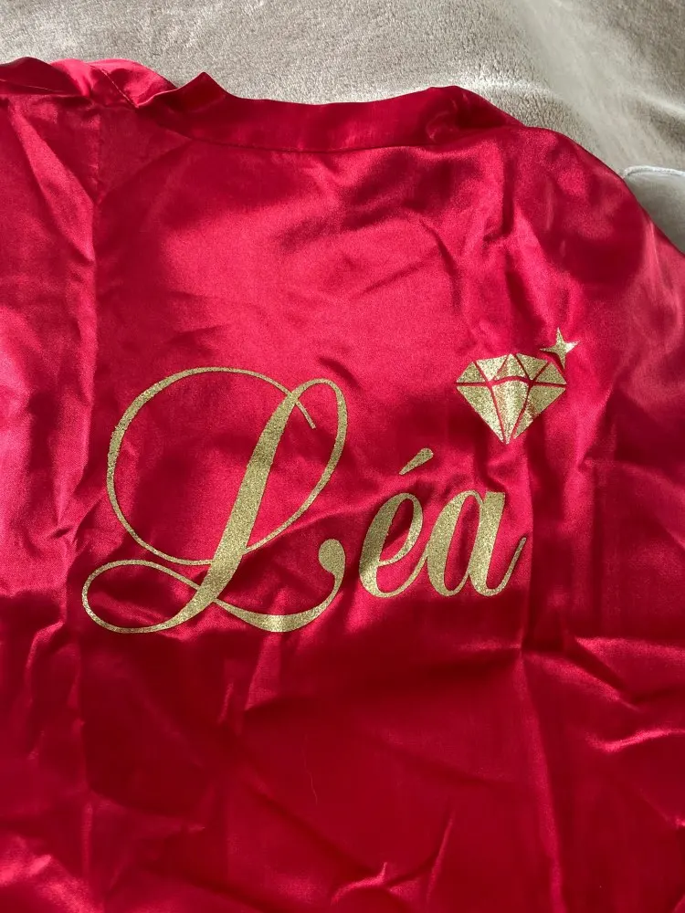 Belle qualité du peignoir et des chaussons jolie impression envoi rapide seul bémol les chaussons sont taille unique et donc très grands mais très satisfaite