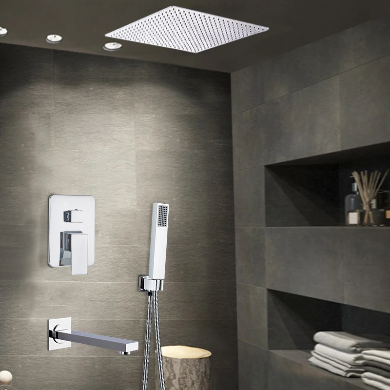 Полированный хромированный большой смеситель для душа от дождя, скрытый душевой набор с ручной лейкой и настенным носиком, 16 дюймов, одна ручка