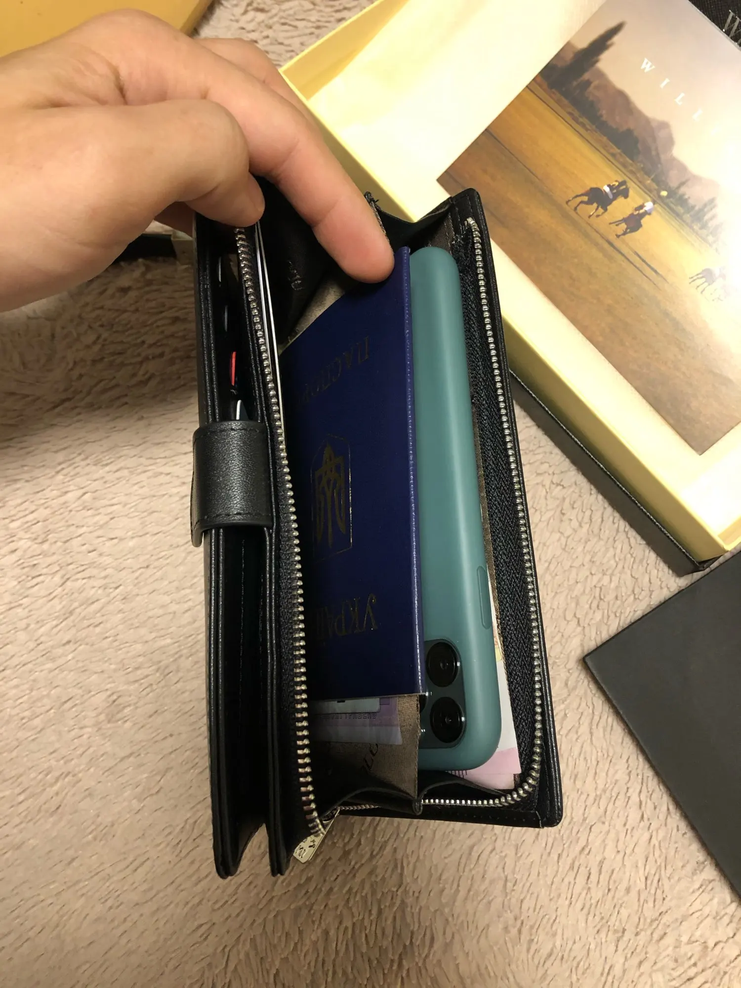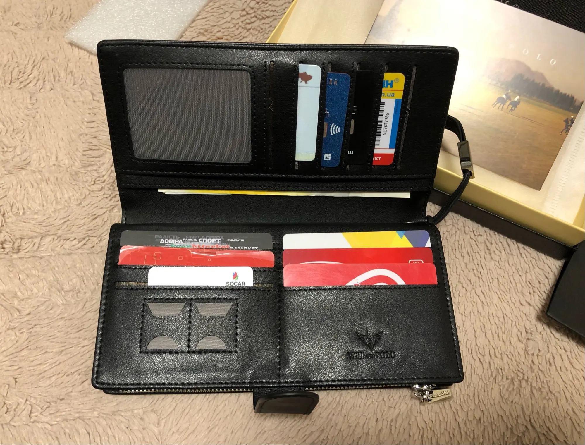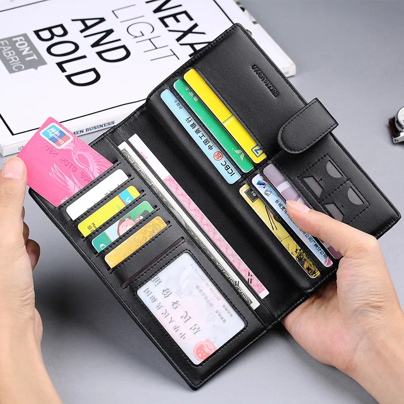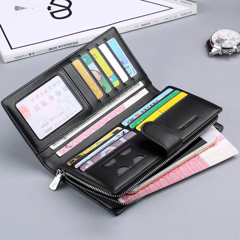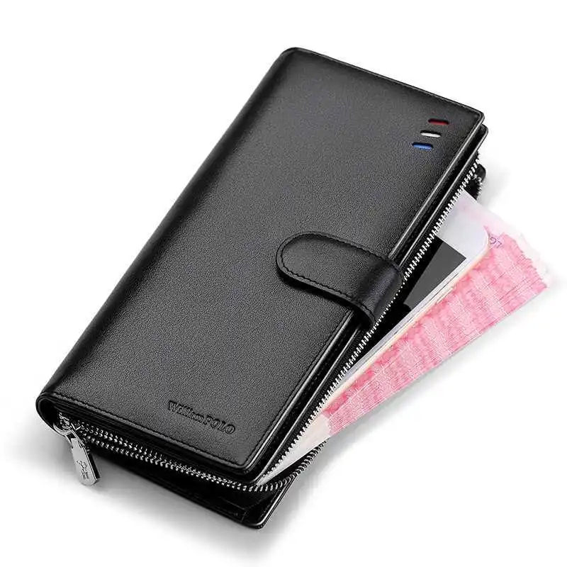 Мужской Длинный кошелек, из натуральной кожи, с отделением для кредитных карт, черный клатч, pl303, мобильный телефон