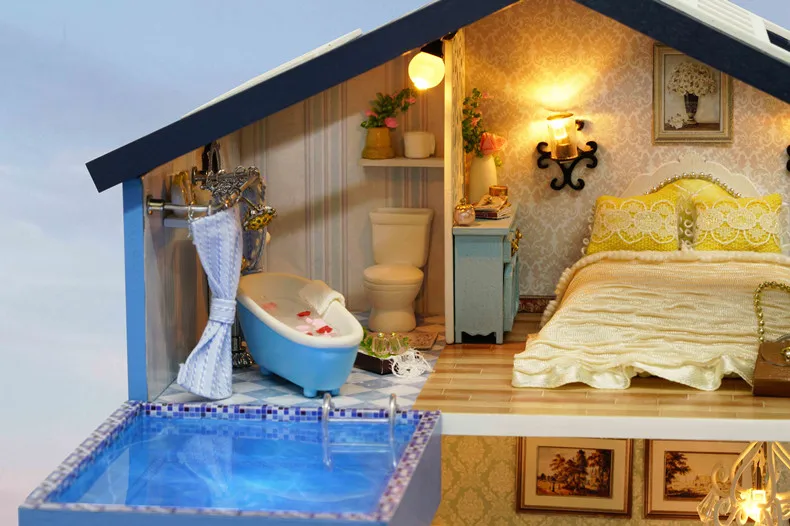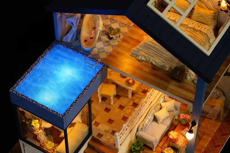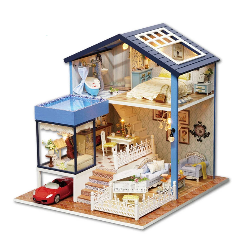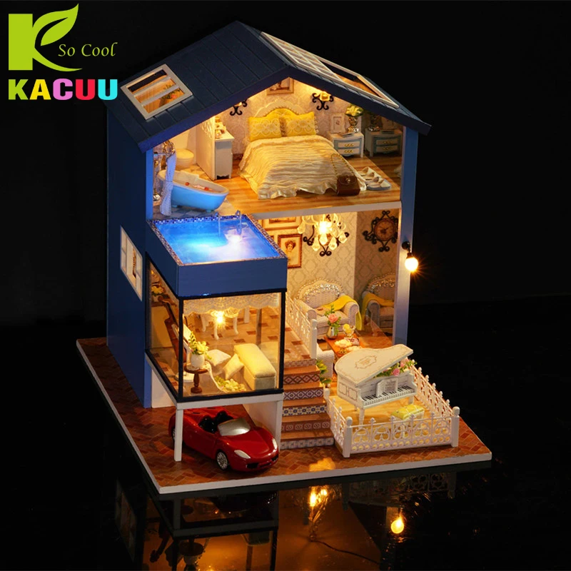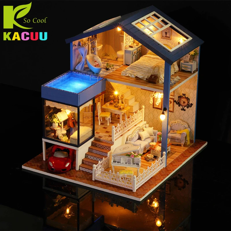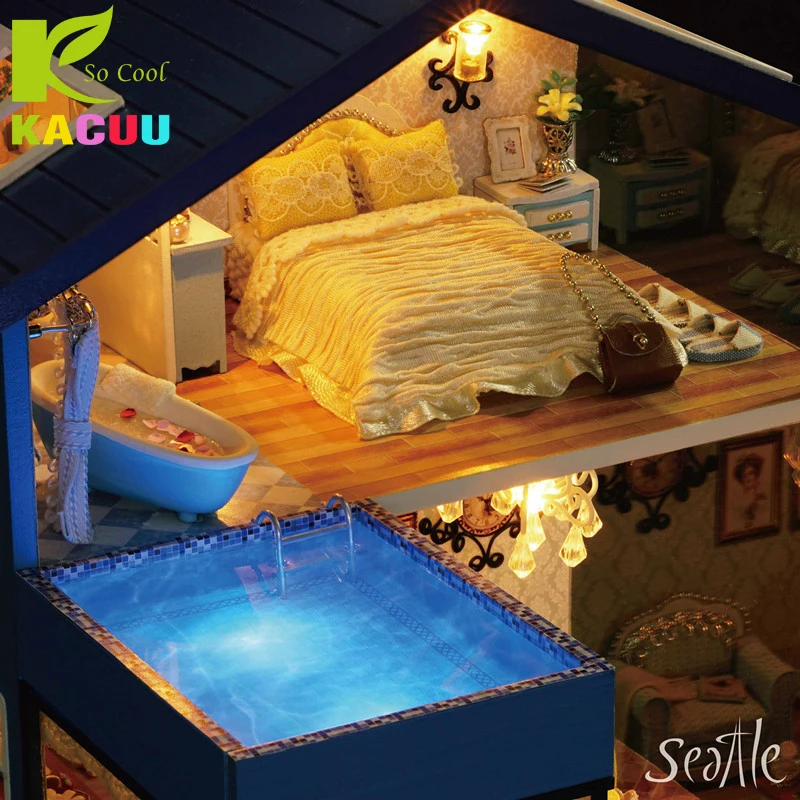 Домик кукольный KACUU в оригинальной коробке, миниатюрный деревянный кукольный дом с мебелью сделай сам, игрушка-фиджет для детей, подарок на день рождения, Сиэтл