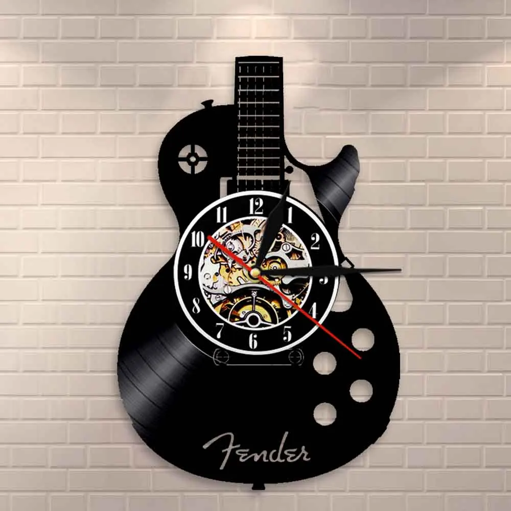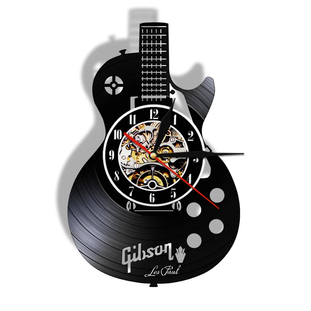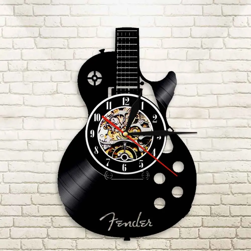 Акустическая гитара настенные художественные настенные часы музыкальный инструмент настенная для домашнего интерьера Декор Виниловая пластинка настенные часы Рок н ролл музыкальный подарок