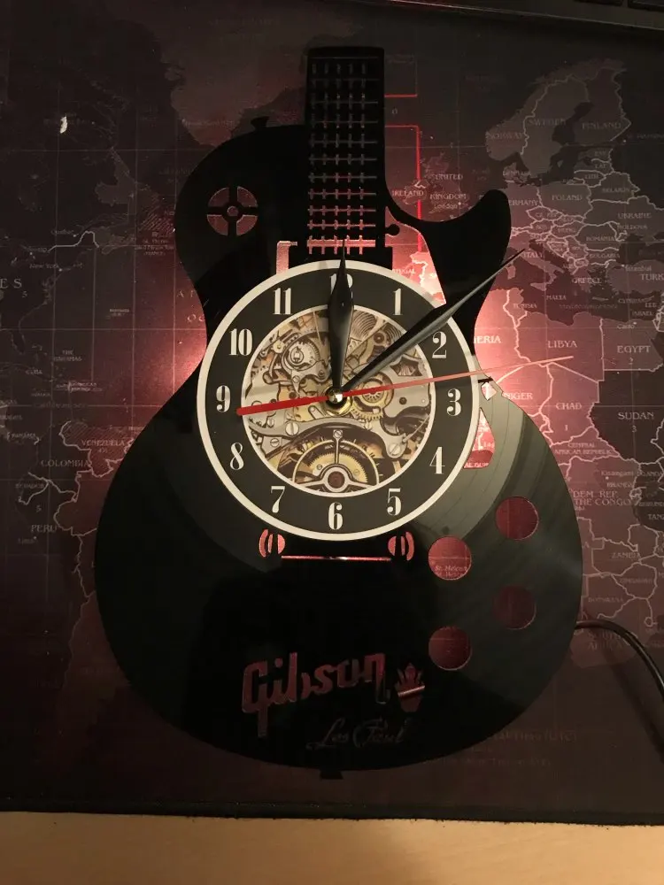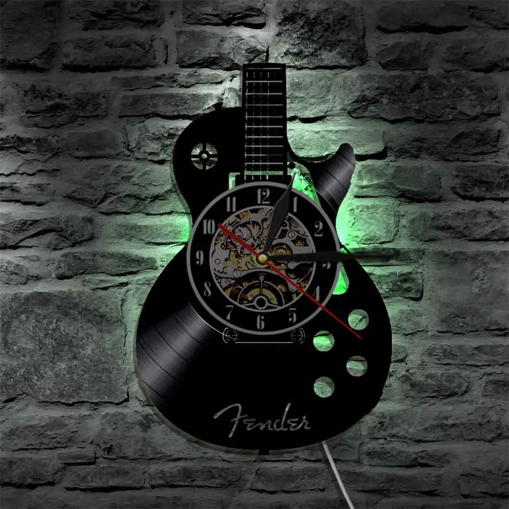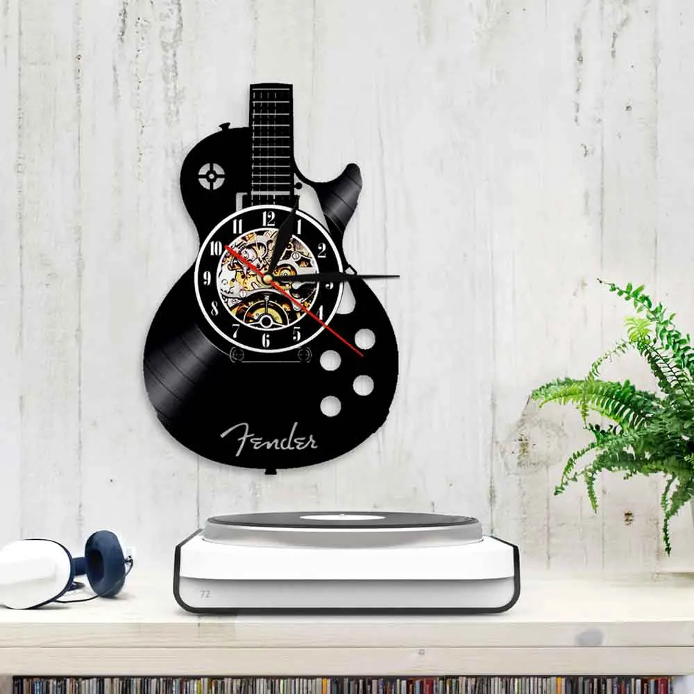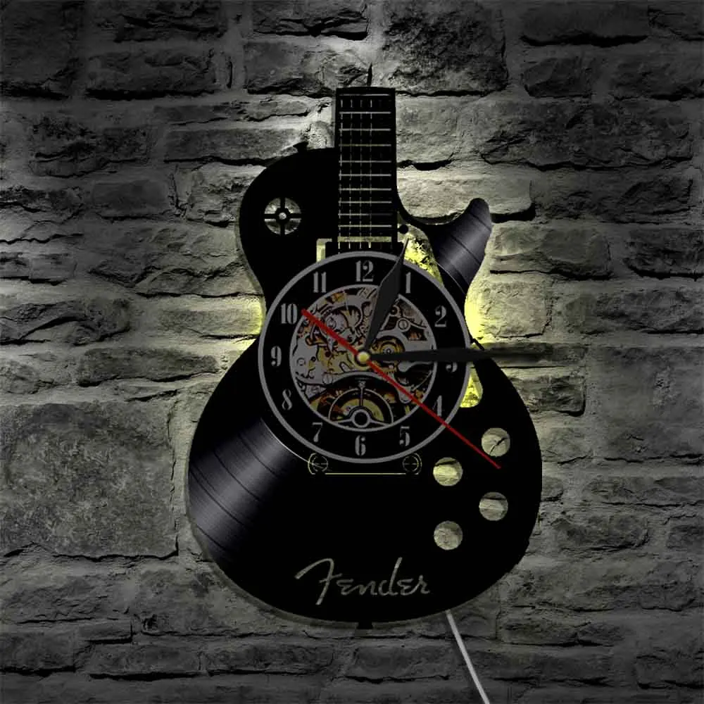 Акустическая гитара настенные художественные настенные часы музыкальный инструмент настенная для домашнего интерьера Декор Виниловая пластинка настенные часы Рок н ролл музыкальный подарок