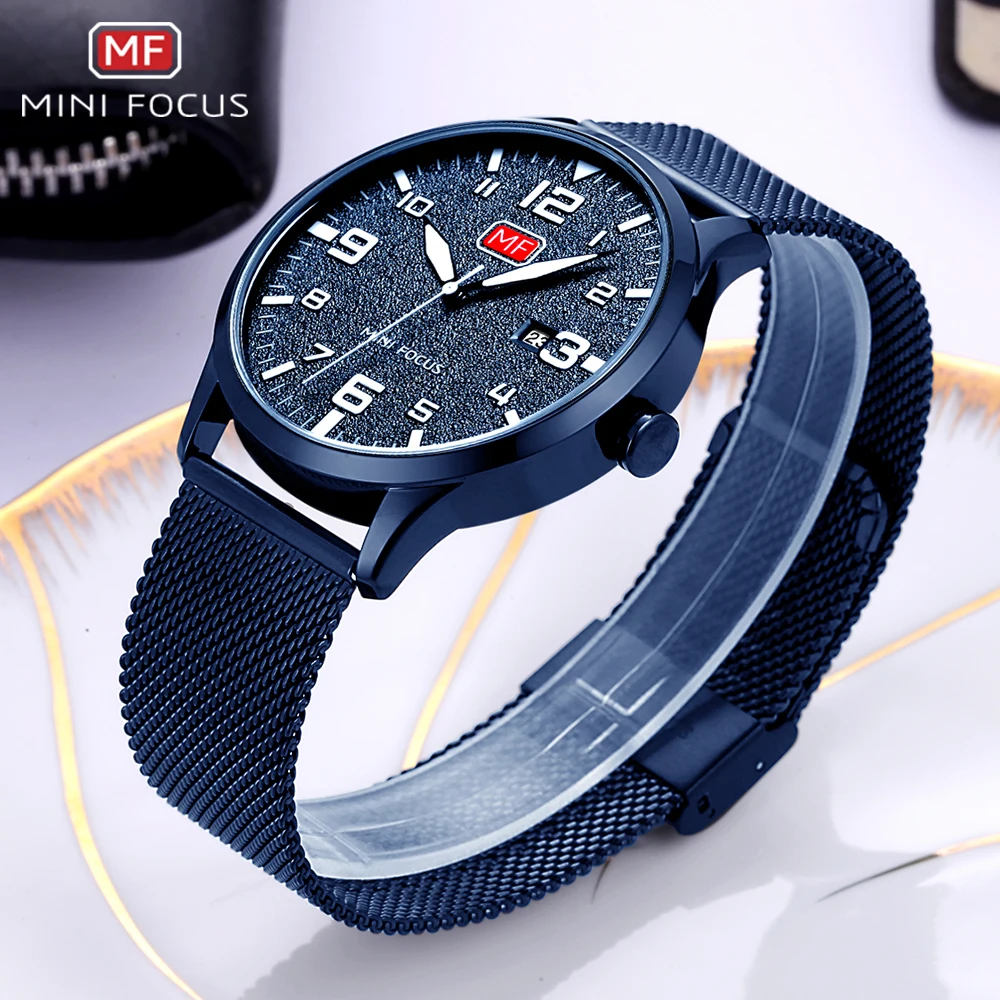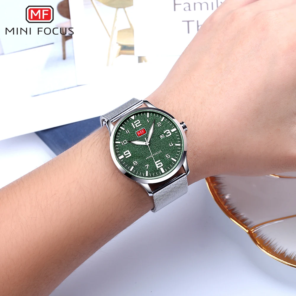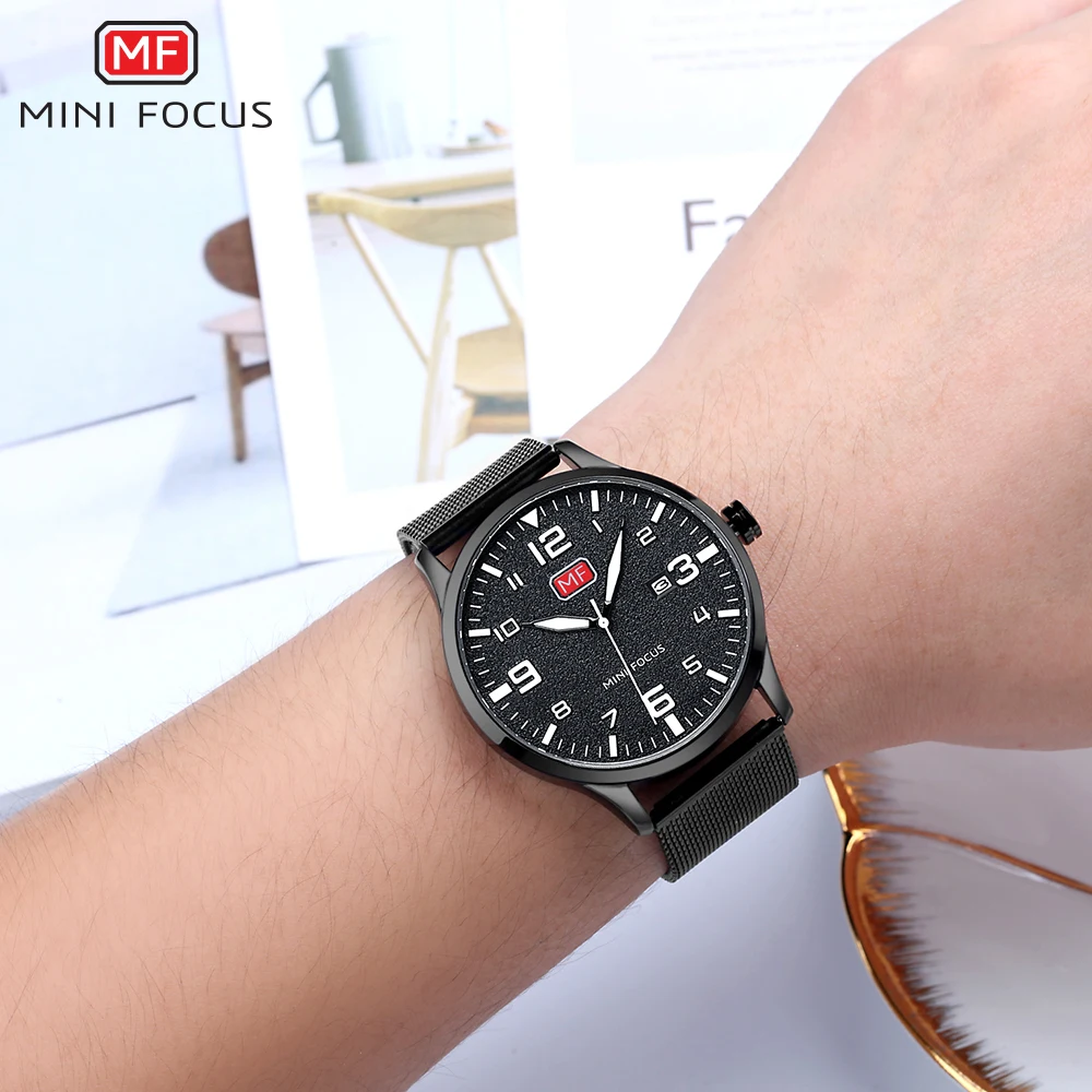 Мужские ультратонкие часы MINIFOCUS, роскошные брендовые кварцевые часы из нержавеющей стали, сетчатые часы с автоматической датой