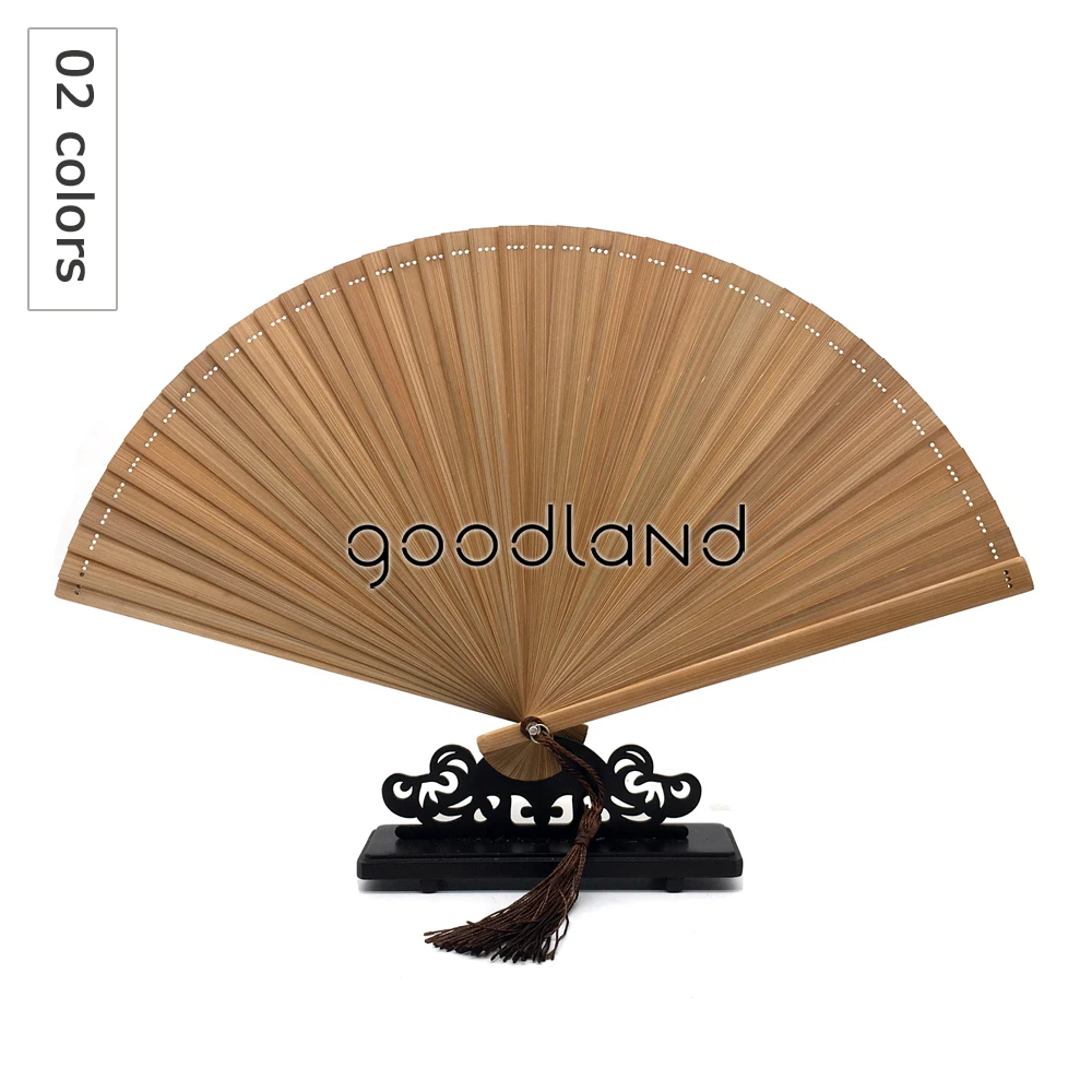 Веер бамбуковый, кофейный, черный, китайский, японский, полностью бамбуковый, складной, с кисточкой в подарок, 1 шт.