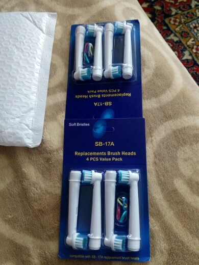 Идеально!! Как на фото. Хорошо упакованный набором из 4. Совместим с моей зубной щеткой :)
