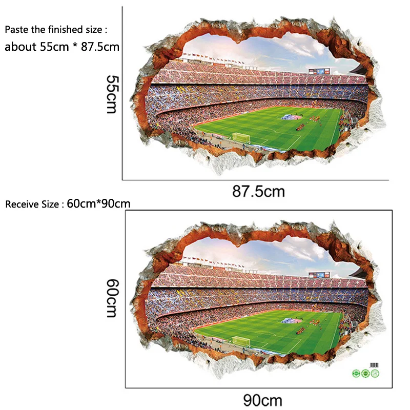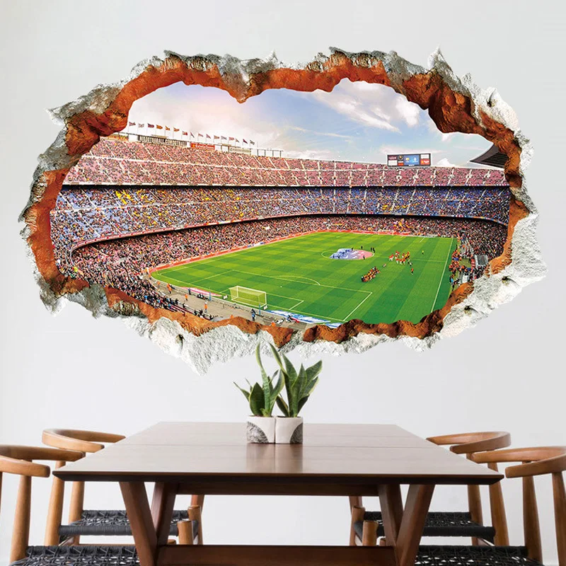 Настенные 3D стикеры с изображением сломанного футбольного поля, для детской комнаты, спальни, украшение для дома, настенный плакат, футбольные Стикеры, художественные наклейки