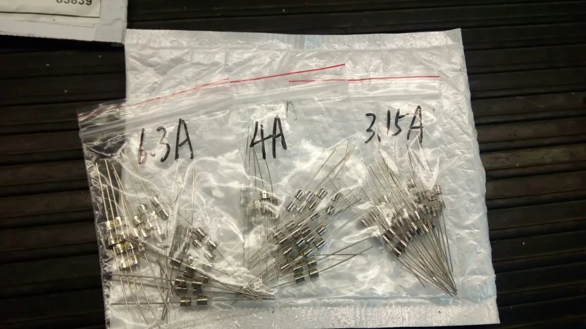 Заказал по 20 шт. на 3,15 А и 6,3 А количество соответствует. При проверке мультиметром на целостность один из партии 6,3А не прозванивается. Предохранитель с номиналом 3,15 А выдерживает 3,75 без видимого нагрева. точно не знаю, на каком токе должно происходить разрушение проводника, 3,15А он в принципе должен пропускать сколь угодно долгое время. Предохранитель из другого магазина в другом исполнении и с номиналом на 2 А на этом токе 3,75А раскаляется до свечения нити, но тоже выдерживает, не разрушаясь.